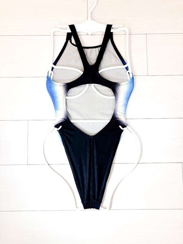 12スピード女子競泳水着M★アクアブレードうろこマーキュライン★超光沢黒ブラックブルー★オープンバックハイレグ★旧ミズノ製