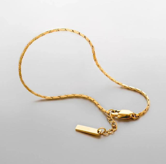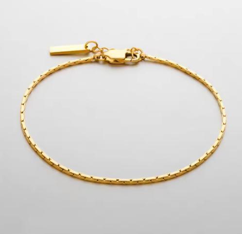 細身なゴールドチェーンブレスレット。