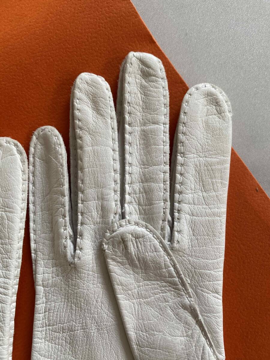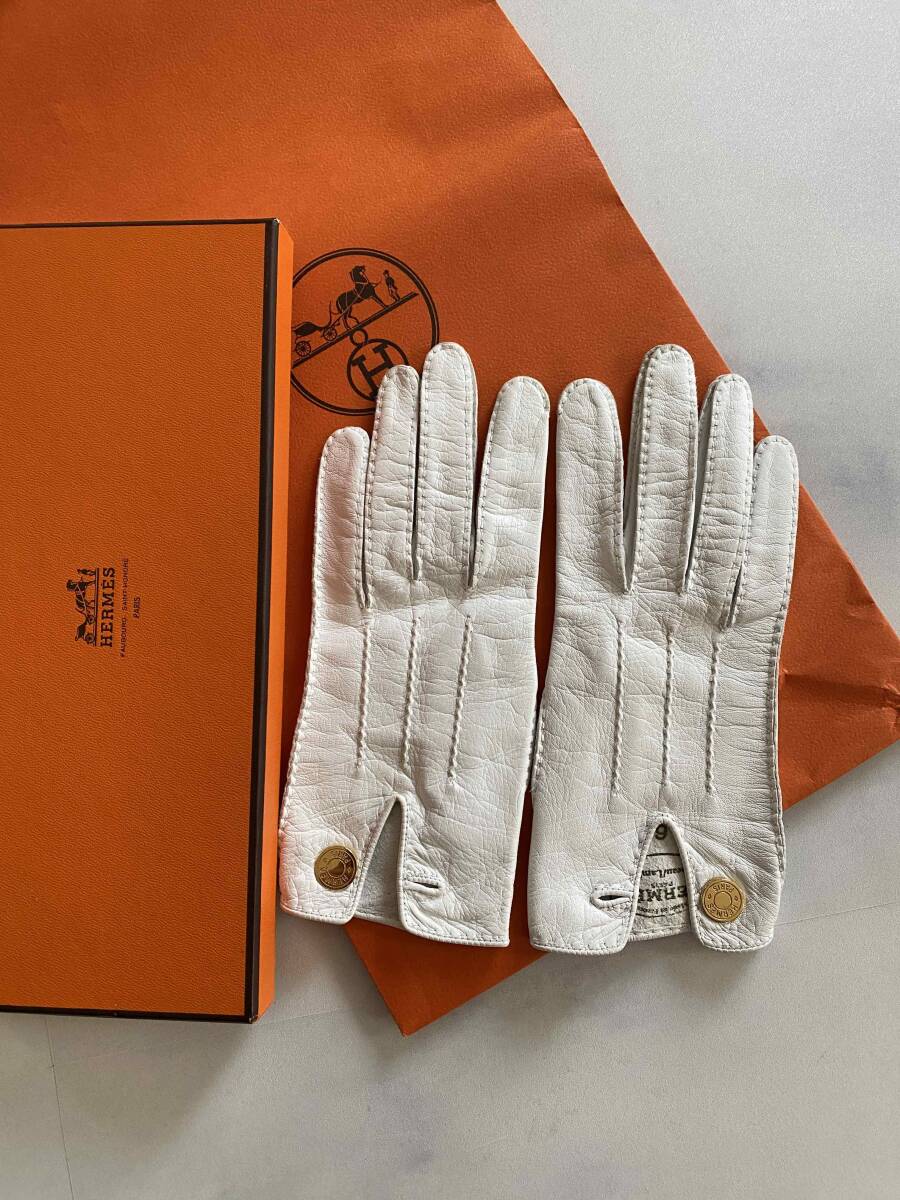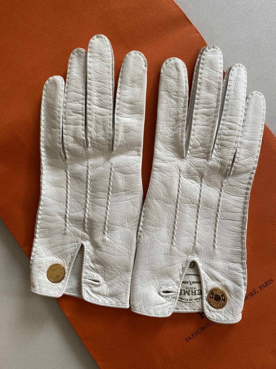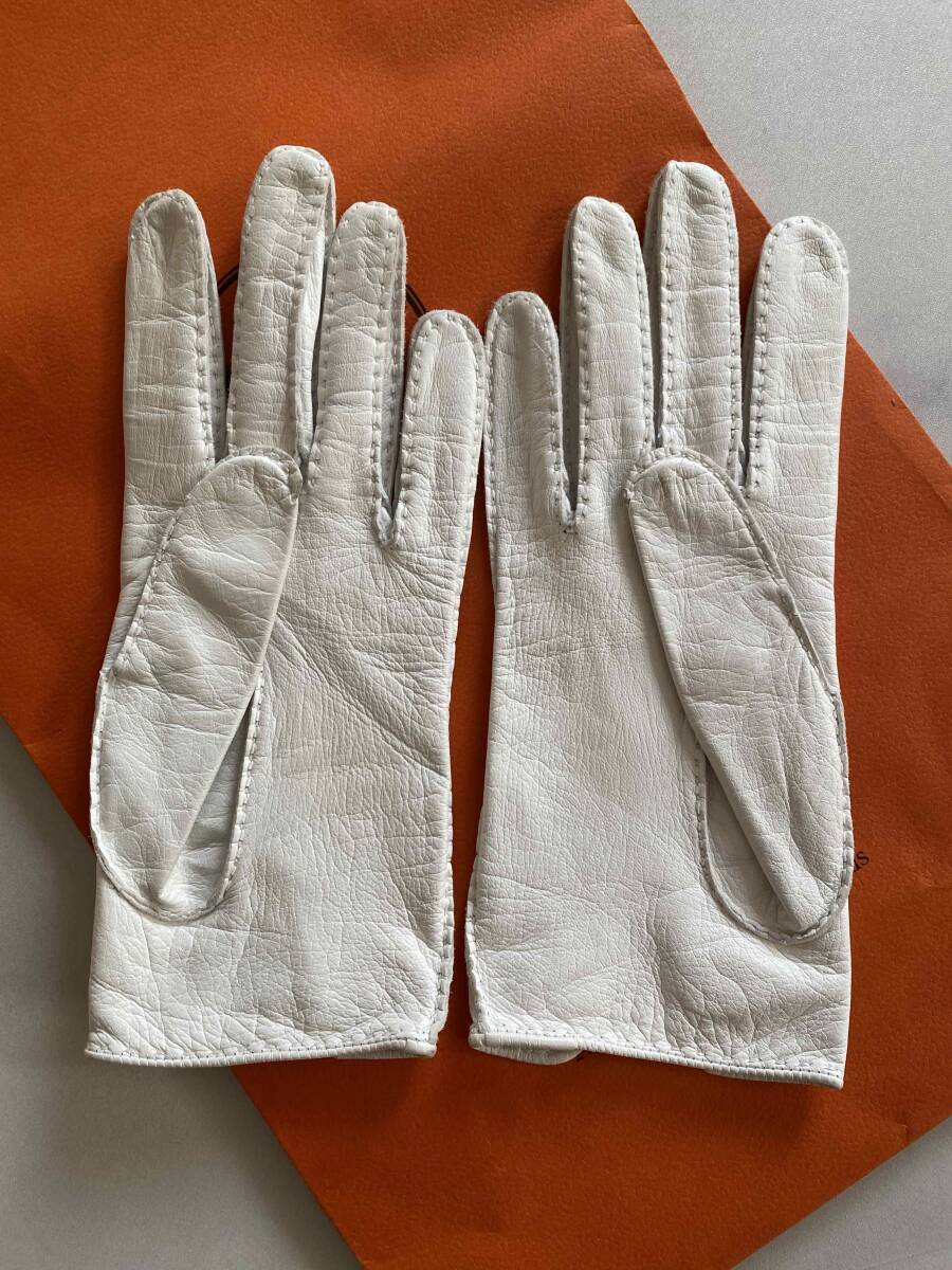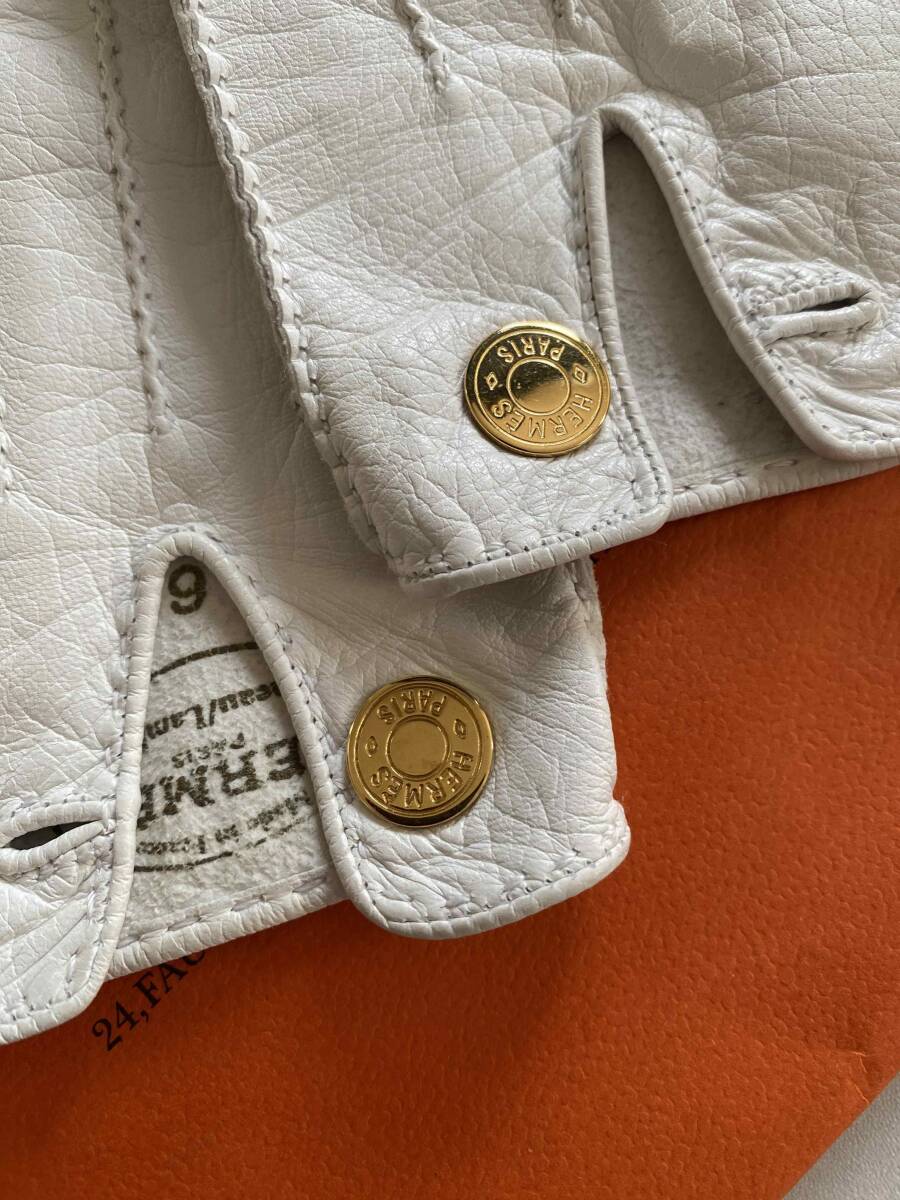 【美品】エルメス HERMES レディース レザーグローブ ホワイト 革手袋 サイズ6ハーフ 裏地無し フランス製