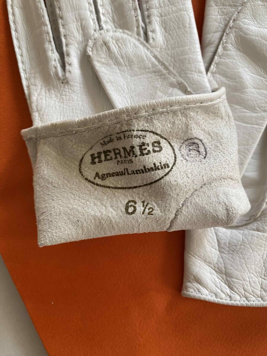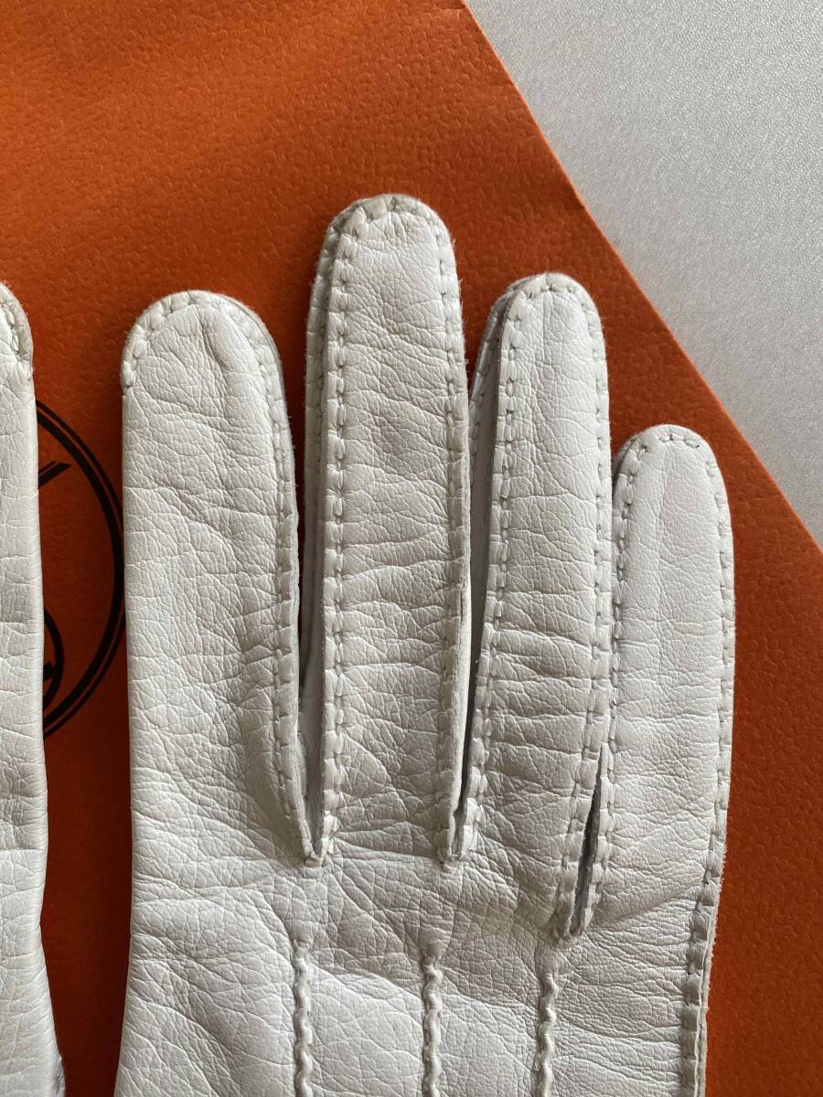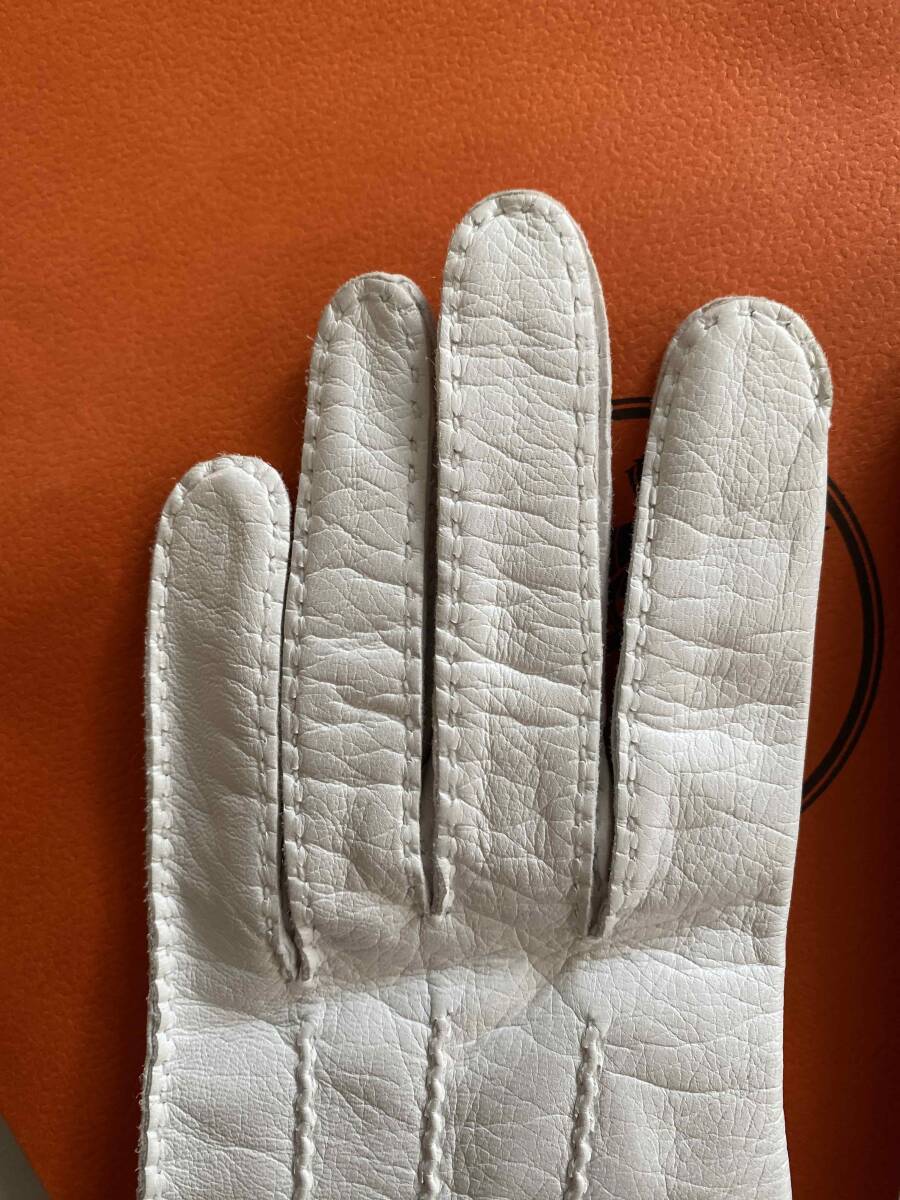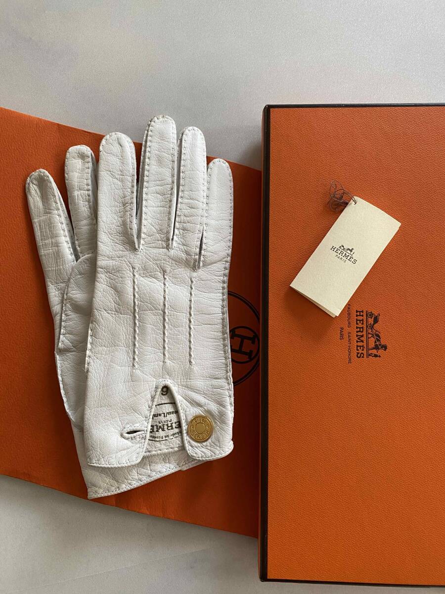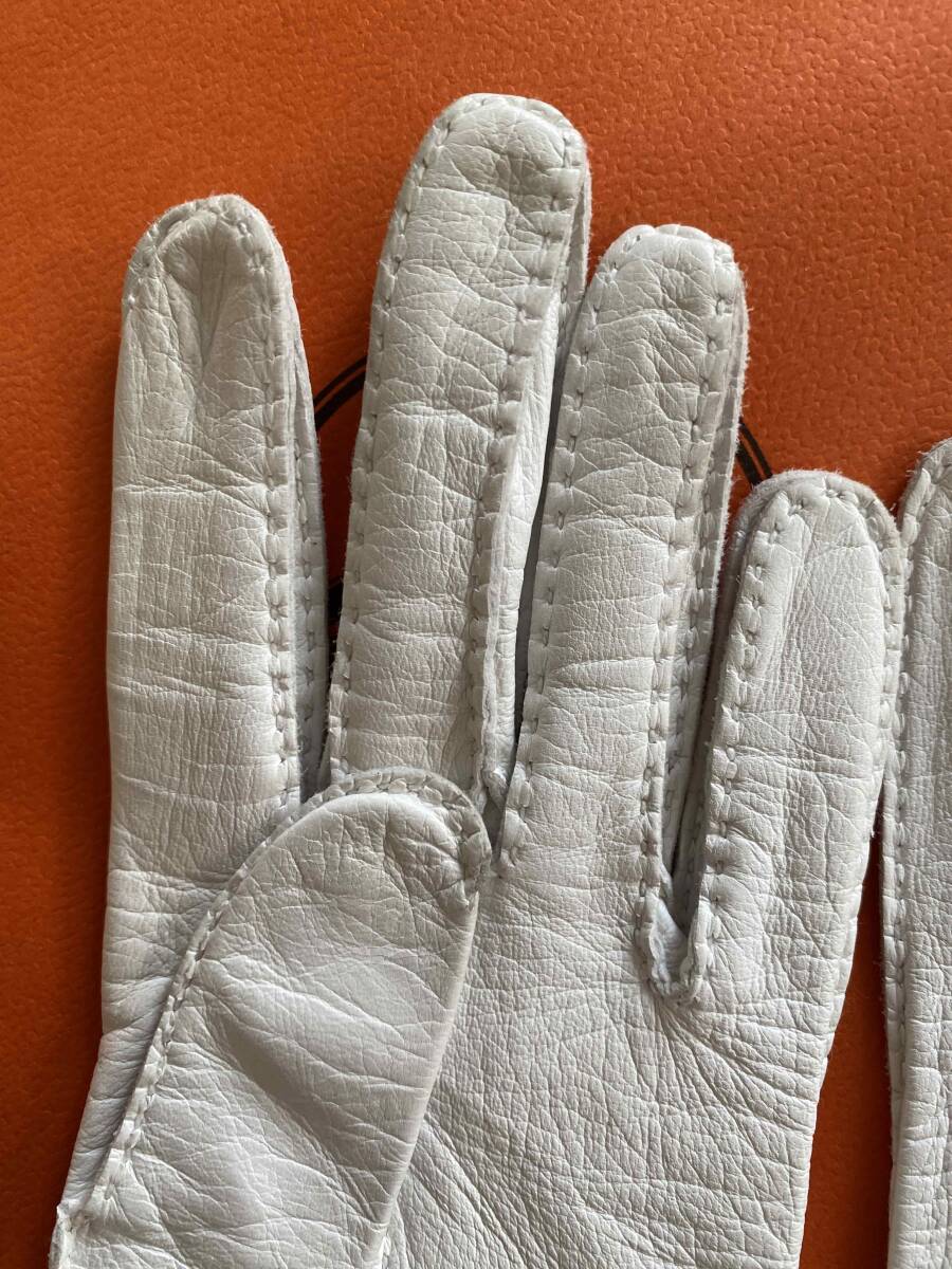 【美品】エルメス HERMES レディース レザーグローブ ホワイト 革手袋 サイズ6ハーフ 裏地無し フランス製
