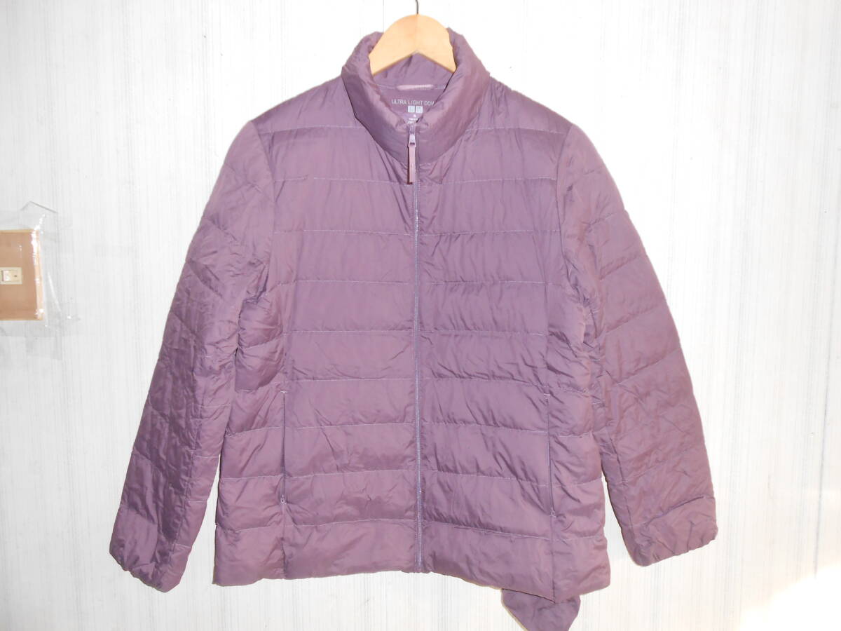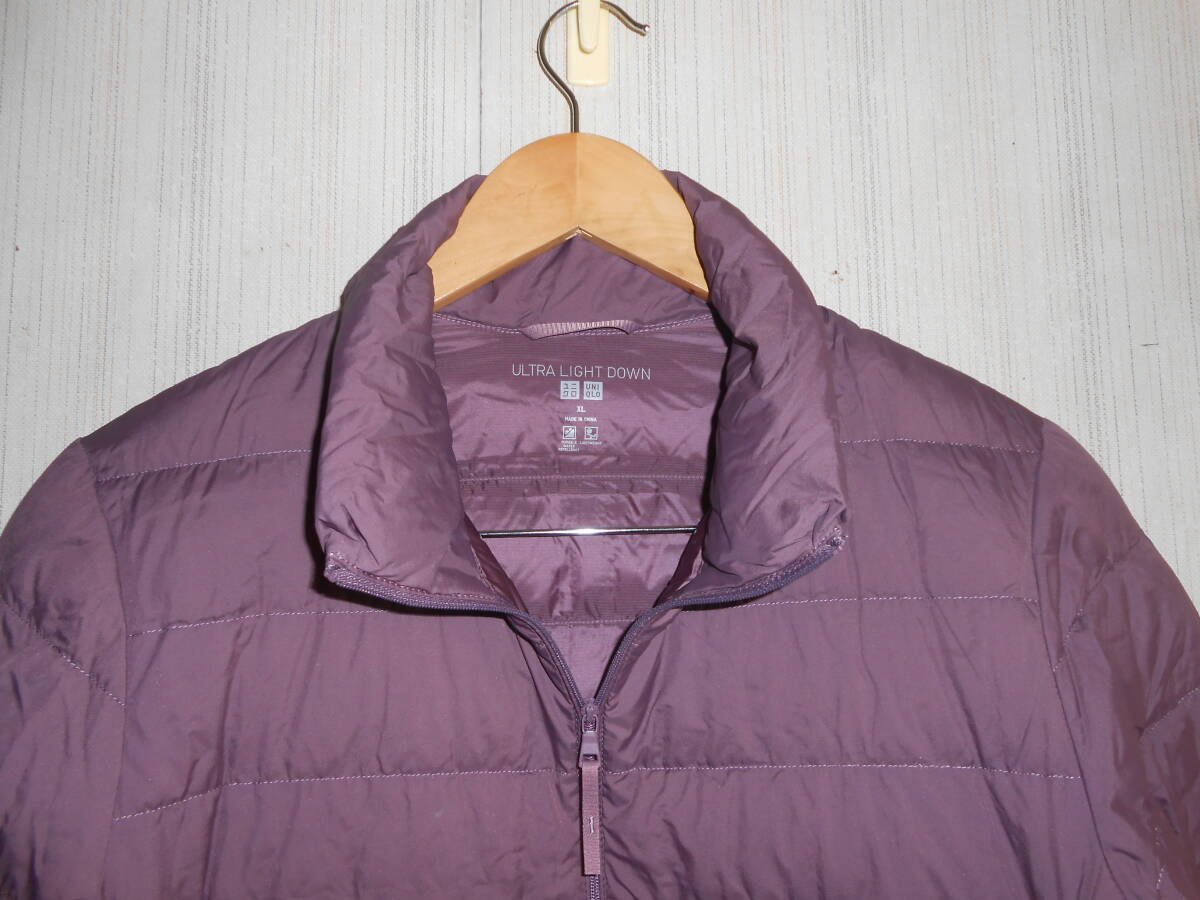 A95美品ユニクロ収納袋付きウルトラライト軽量ダウンジャンバーパープル紫XL女性用