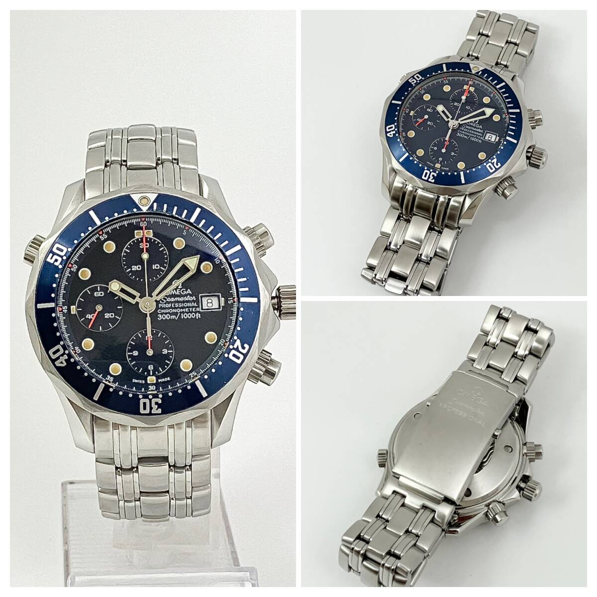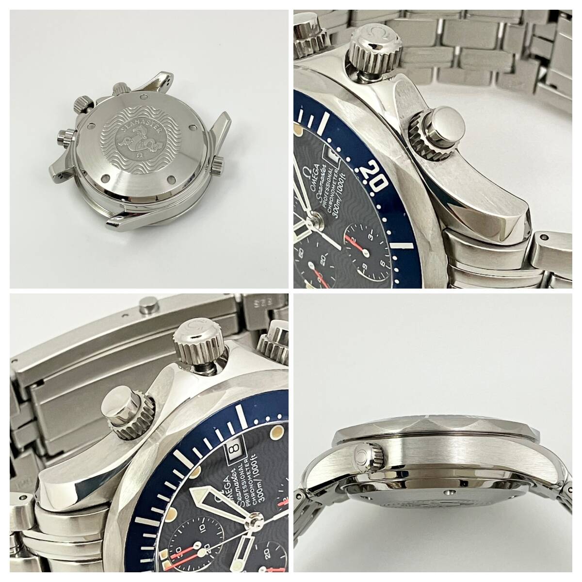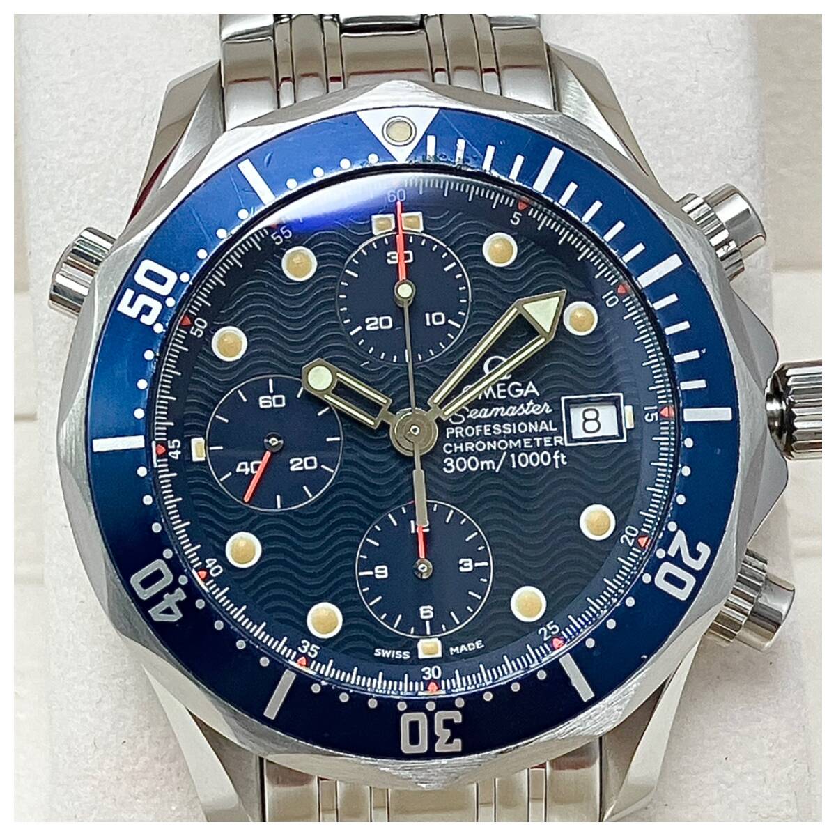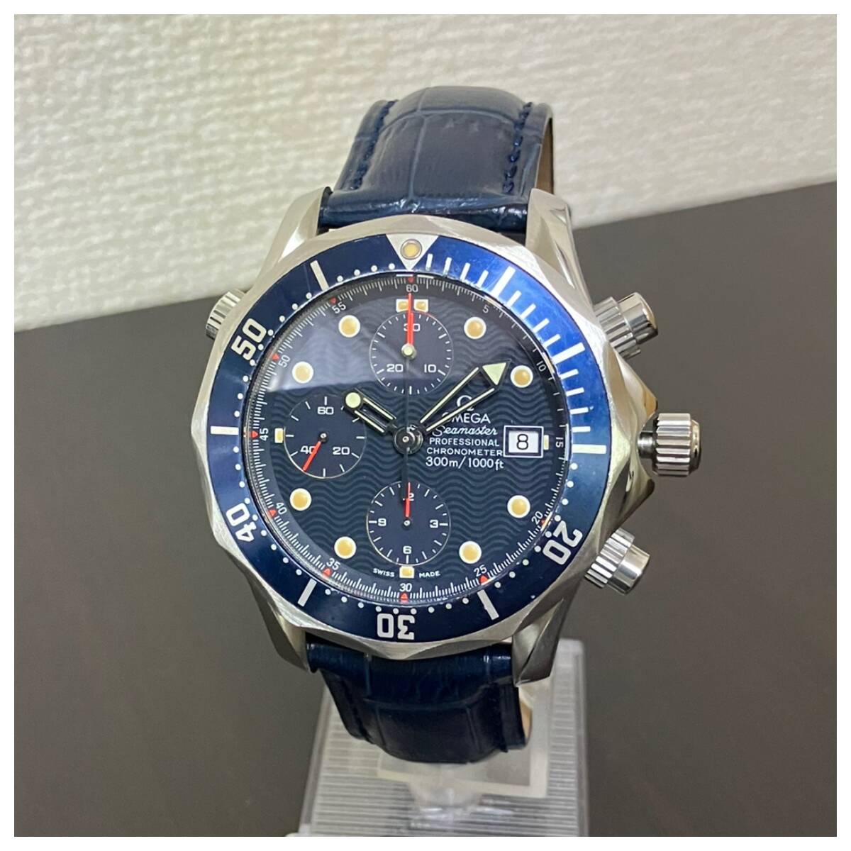付属品、ベルト2種付き☆OH済み極美品のオメガシーマスター時計・300m・自動巻きクロノグラフ・ネイビー盤☆2599-80☆