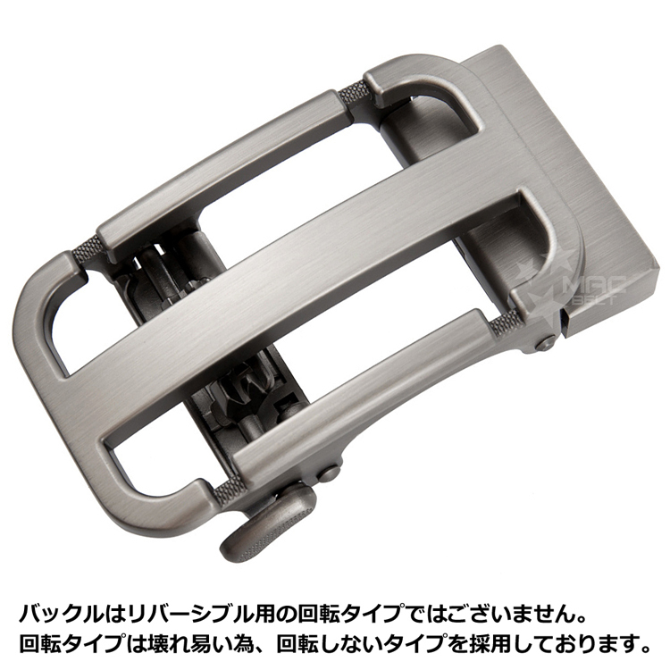 ベルトの裏面に加工を施していますので、バックルにベルトを通すだけで好きな位置で留める事が出来ます。