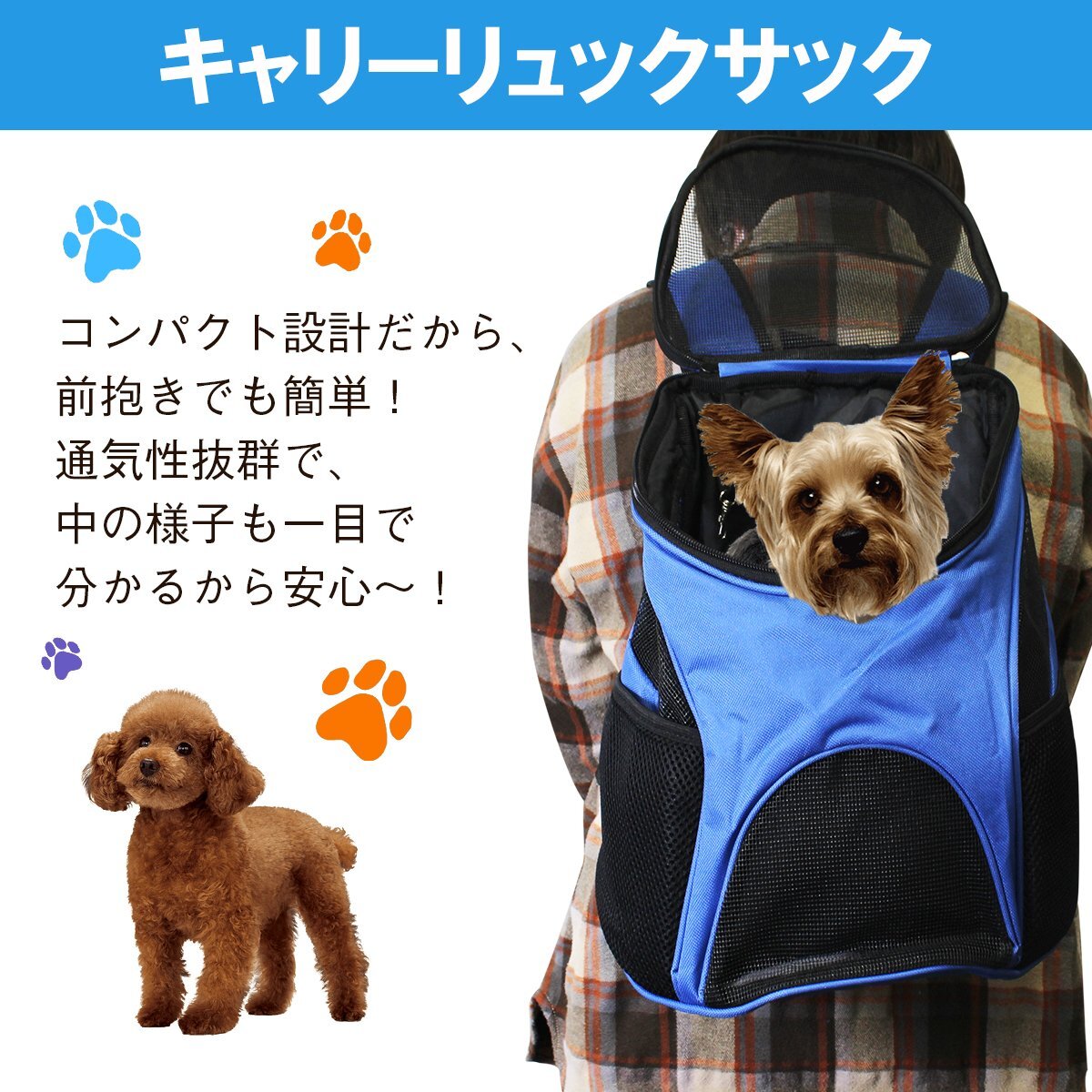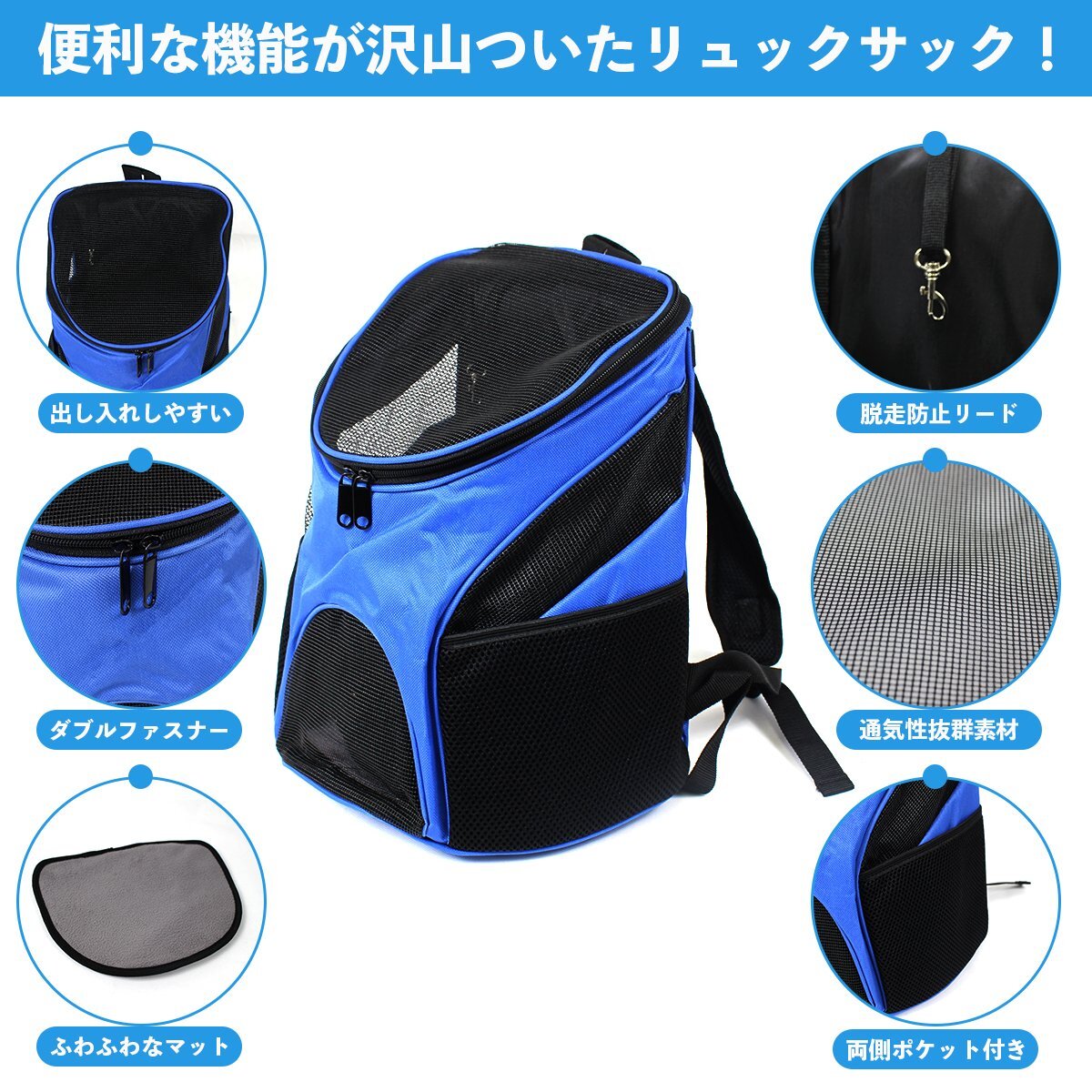 キャリーバッグ 人気のリュック型♪ メッシュ素材 ペットバッグ 耐荷2.5kg 小型犬/猫用 ブルー ペットキャリー お散歩 お出かけ 災害