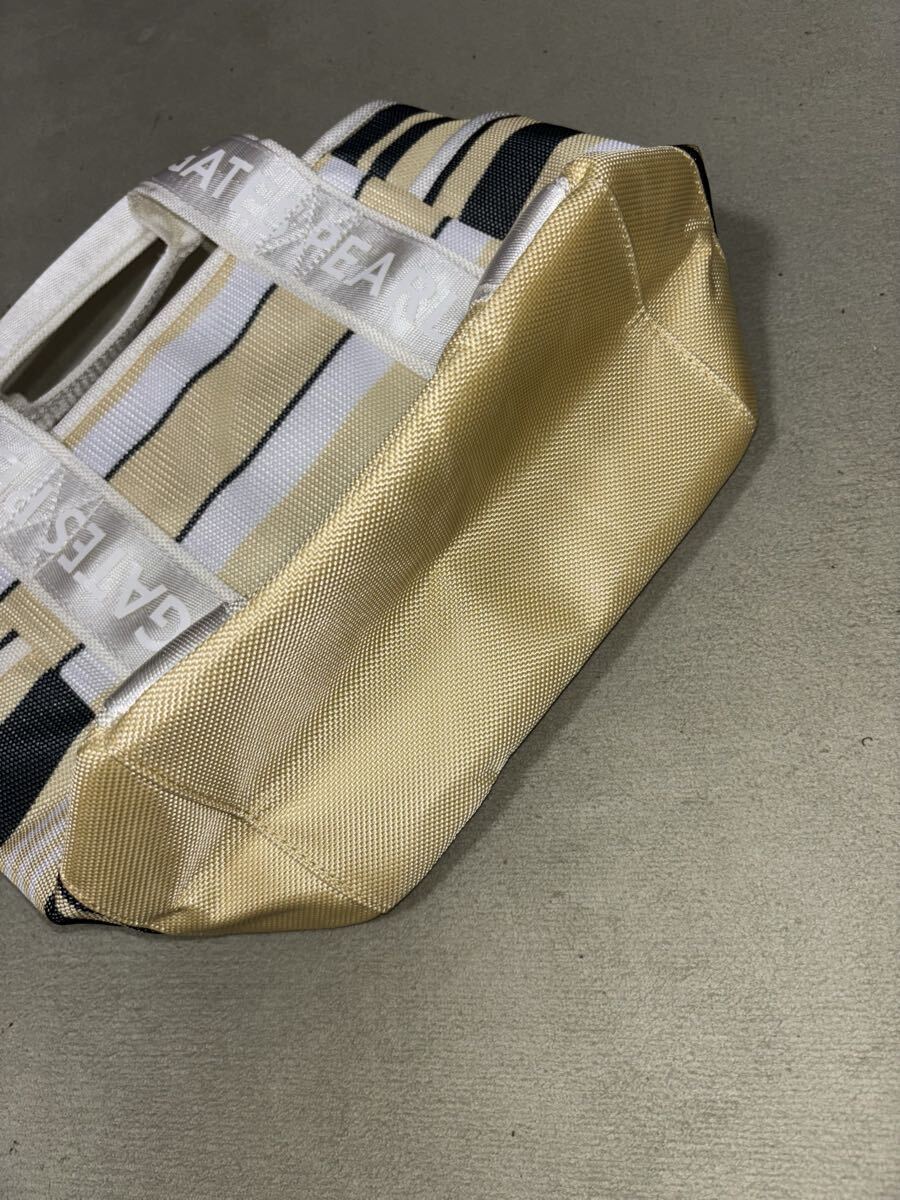 マルチボーダー柄シリーズで、ポリエステル素材の光沢が高級感あって、また汚れも付きにくい材質のため長く愛用できるアイテムかと思います。