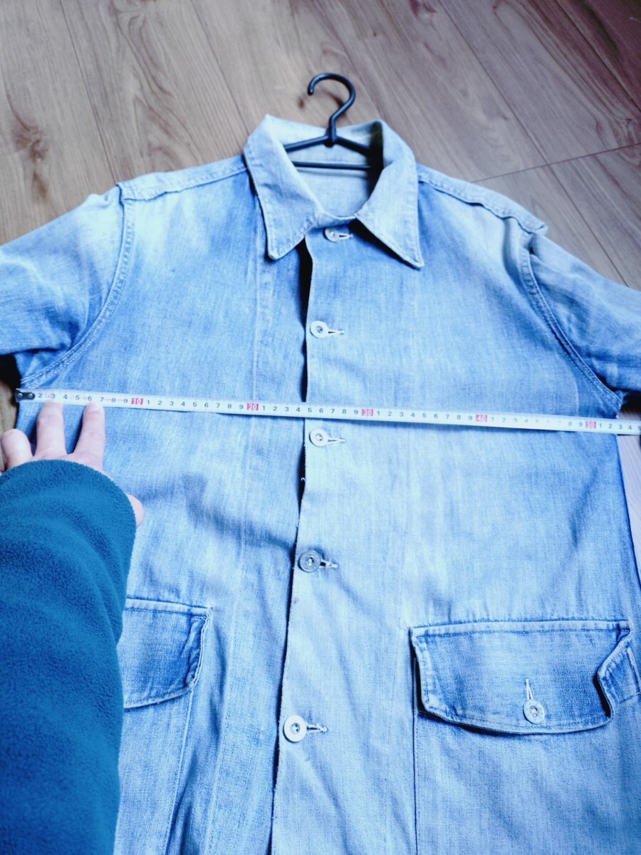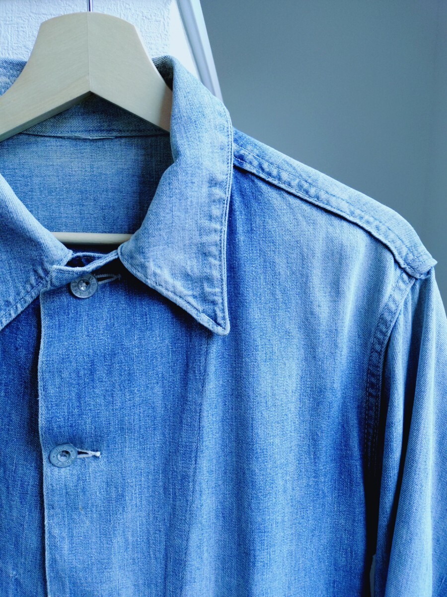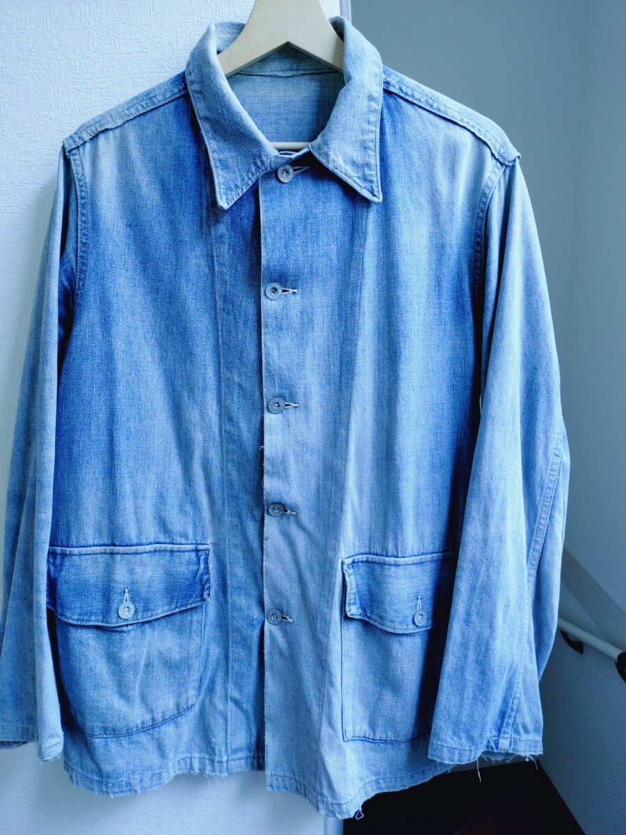 こちらは襟にリペアありの40年代のUSARMYの雰囲気系のデニムカバーオールになります★もちろんオリジナルで色の雰囲気が最高です★サイズは身幅53着丈72肩幅44袖丈60のゴールデンサイズ★このへんはショーケースに入るようなレベルになりましたね★お値段は128000円になりますので宜しくお願い致します★他にも出品してますのでご覧下さいませ★