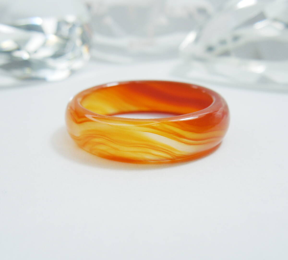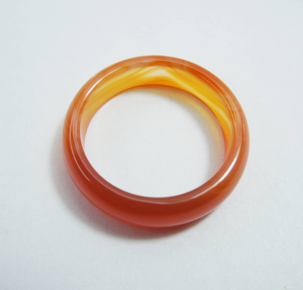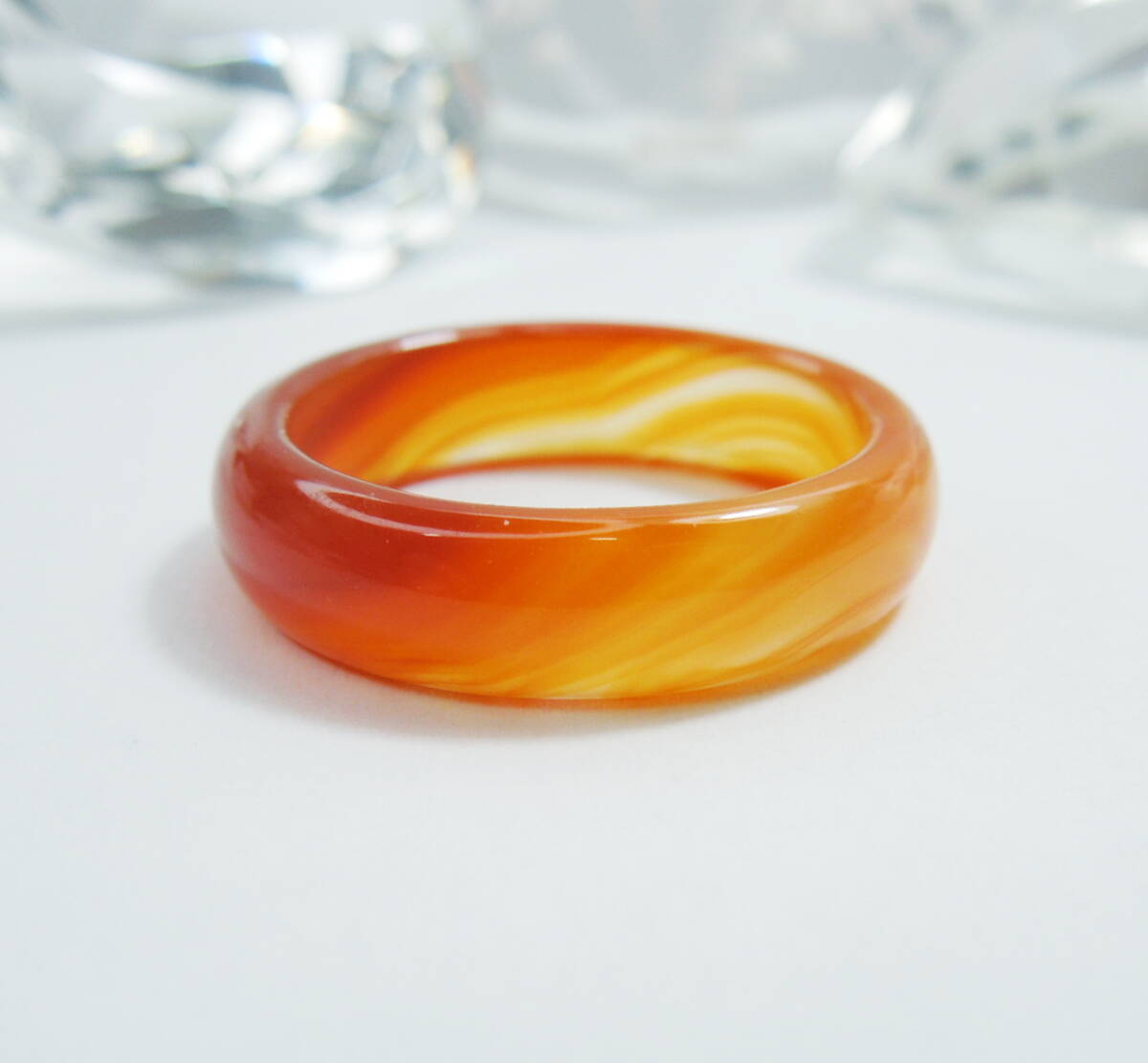 P3 メノウリング 約18.5号 オレンジ系 瑪瑙指輪 くりぬきリング 天然石 くり抜きリング 金属アレルギー対策 約18号半 縞瑪瑙 しまめのう