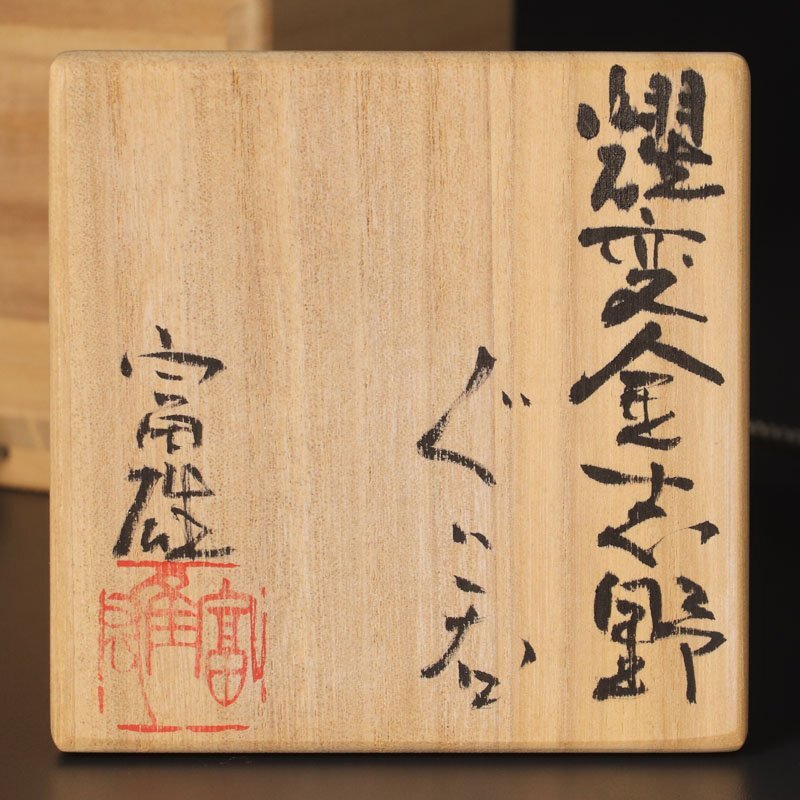 【鈴木富雄】 1948年京都に生まれる。志野焼に惹かれ、ほぼ独学にて陶技を研鑽し1988年に京都八幡に山月窯を開窯。 以降、特に展覧会への出品などは一切無く、その反面、個展では横浜、京都、大阪、富山、広島、福山、長崎など広範囲にて毎年各地の有名百家展にて作品を発表。 志野焼を専門に造り特に男性的な力強さをもった鼠志野や最新作では金色に光り輝く耀変紫金志野などを手掛け茶陶、グイ呑などで高い評価を受けている。 |