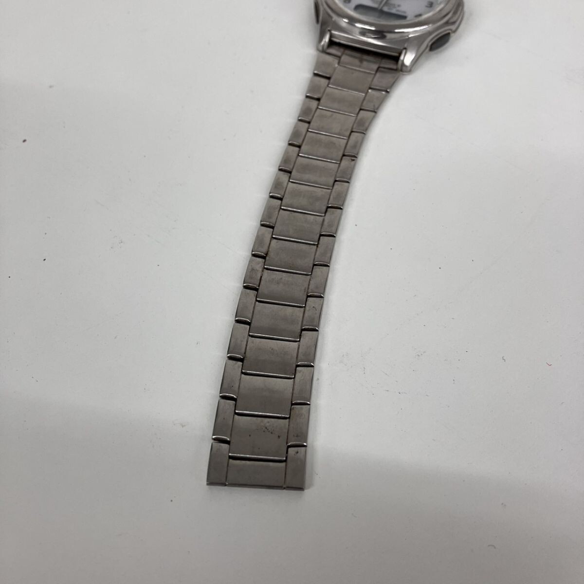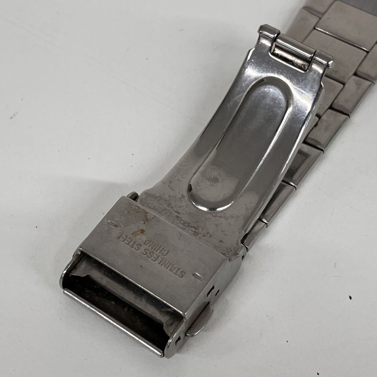 取り扱っている商品は未使用・未開封も含め、全て一度は人の手に渡った一点ものの中古・ジャンク扱いでの商品です。 当方素人ですので肉眼で確認できる簡易的な検品、採寸、および簡易梱包となります。 ※稼働の記載につきましては秒針等の確認のみとなり、全体の動作を保証するものではございません。 また、出品時の中古品の動作状況となりますので、予めご了承の上でご入札ください。 不動の表記につきましてはクォーツ式のムーブメントの場合、動作未確認の状態となります。 電池交換後、不具合があった場合でも返金、返品の対象とはなりませんので、予めご了承くださいますようお願い致します。 細かな日差、オーバーホール状況、社外パーツの使用に関しては保証しかねますので、ご理解いただけた上でのご入札をお願い致します。 上記を踏まえた上で中古品、ジャンク商品として出品させていただいておりますので、全てご理解いただけた上でのご入札をお願いいたします ------------------------------------------------------------------------------------------------ 【サイズ】 直径約42mm 【付属品】 画像参照 【その他状態】 稼働 バックル部分破損 傷・汚れあり 細かな検品はしておりません。 現状品 ※画像参照 ----------------------------------------------------------------------------------------------- 画像にあるものが全てです。 他詳細は画像にてご判断ください。 ※目立つ傷や汚れを中心に写真を撮っておりますが、画像に写りきっていない傷等がある場合もございます。予めご了承ください。 ※商品を多数出品している関係で、稀に商品説明や画像に誤りがある場合がございます。予めご了承ください。 こちらのページをご覧いただく際は、商品説明文と掲載している画像の全てを確認いただいた上でご入札ください。 | |||||||
