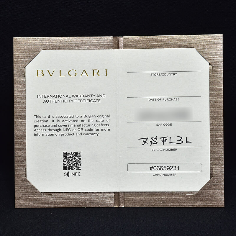 | 刻印 | BVLGARI Au750 MADE IN ITALY シリアルNo. |