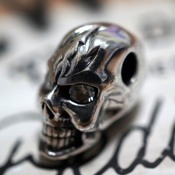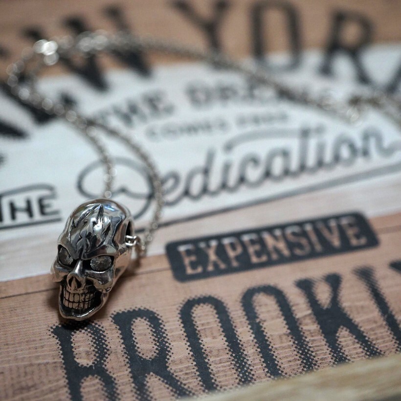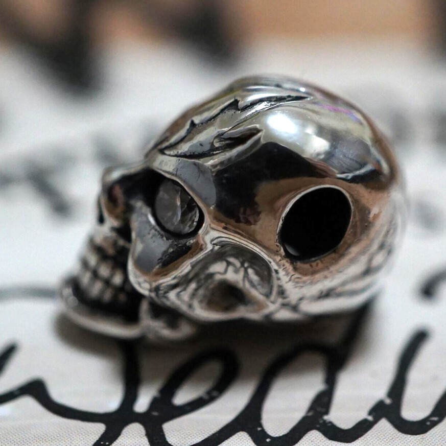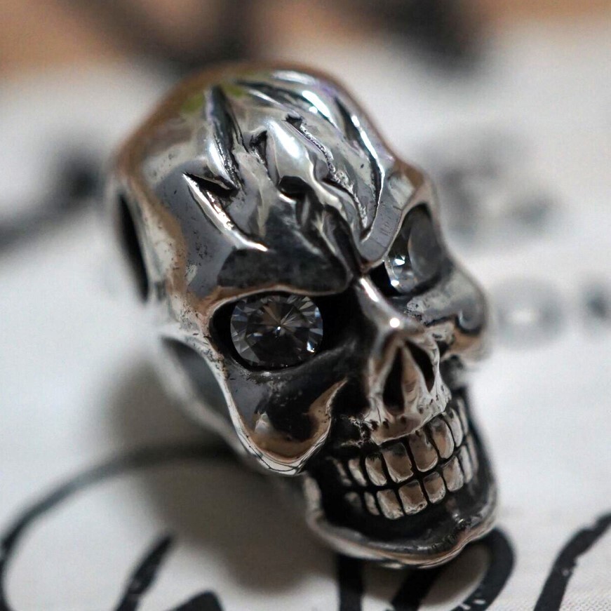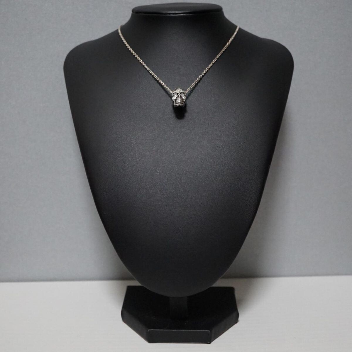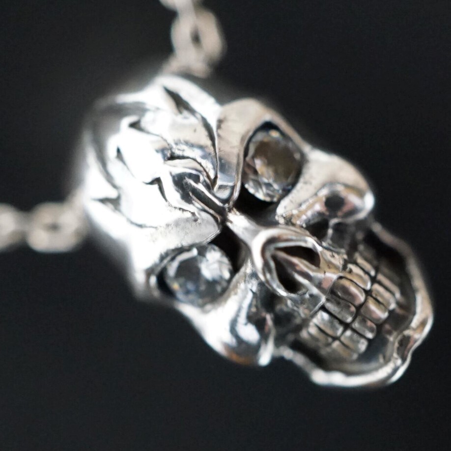 装飾石が鋭い眼光のスカルペンダントネックレス。