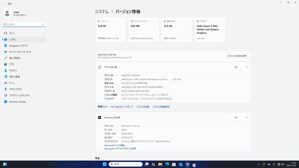 ★高速動作品★ HP ProDesk405 G8 SFF★AMD Ryzen5 PRO 5650G / SSD NVMe256GB / メモリ16GB/ Win11Home/ エクセル,ワード他