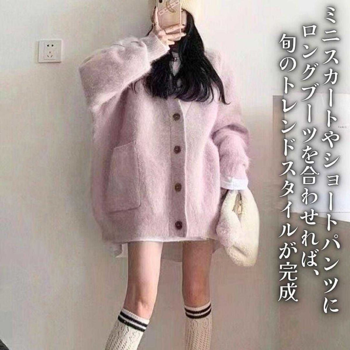 モヘアライク 起毛 もこもこ ふかふか 暖かい パステルカラー ルーズ フィット リラックス ルームウェア 部屋着 大きめ ルーズカーディガン カジュアル 体型カバー ビッグシルエット オーバーサイズ ゆったり 韓国 中国 インポート