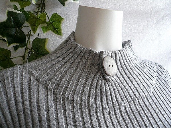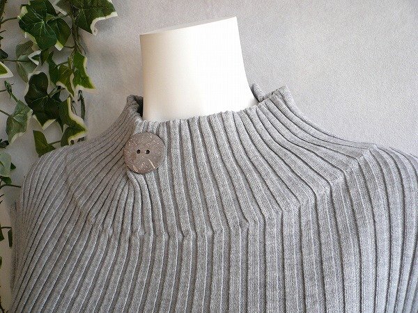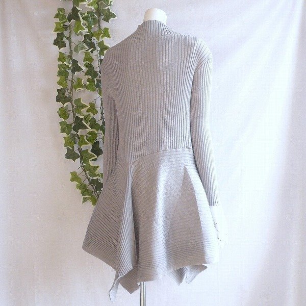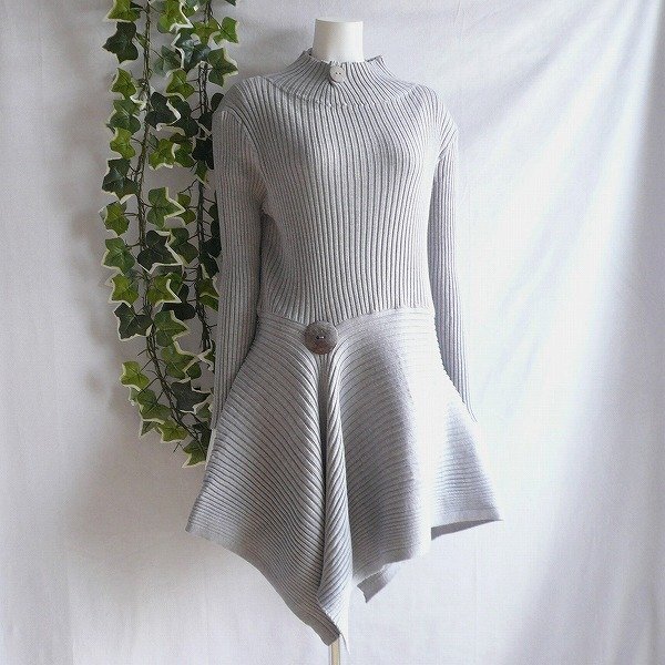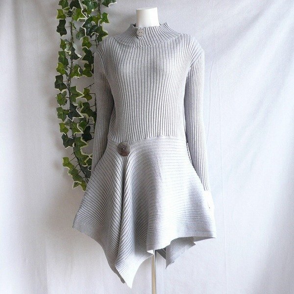新品 8580 ML ニット ワンピース秋 冬 チュニック レディース グレー アシンメトリー飾りボタン ハイネック モード感 上質