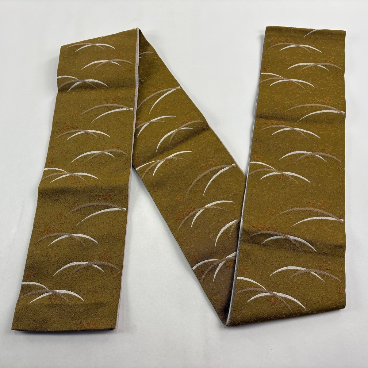 | 半幅帯 美品 優品 芝 花 黄土色 化繊 【中古】 |