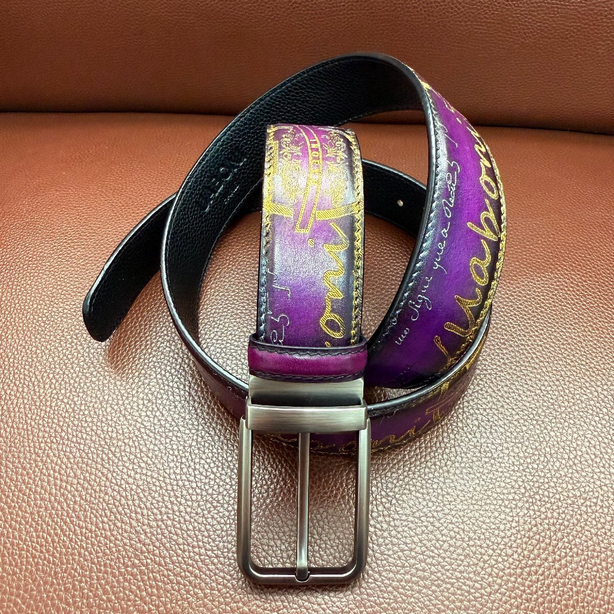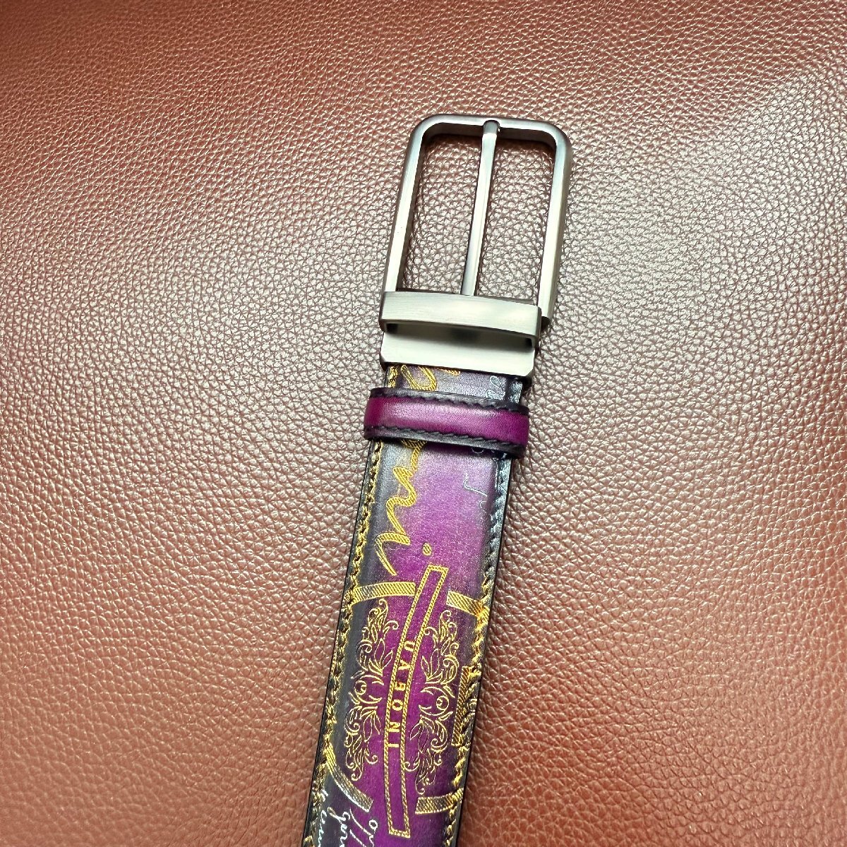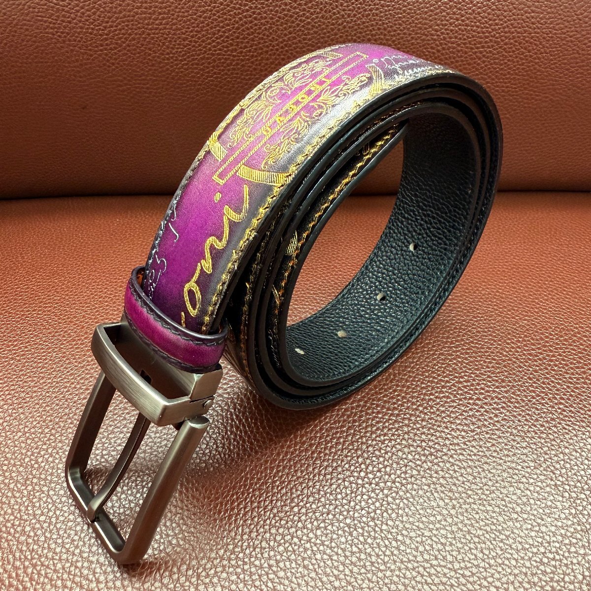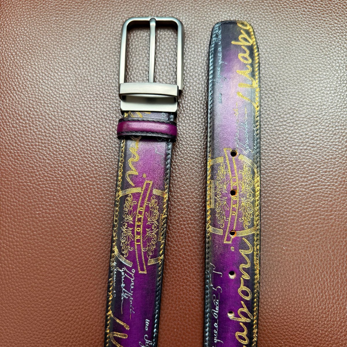 貴重品 EU製 定価9万◆UABONI*ユアボニ*幻のパティーヌ*ベルト◆レザー カーフスキン 手染 ゴールデン 調節可能 スーツ ビジネス 紳士用