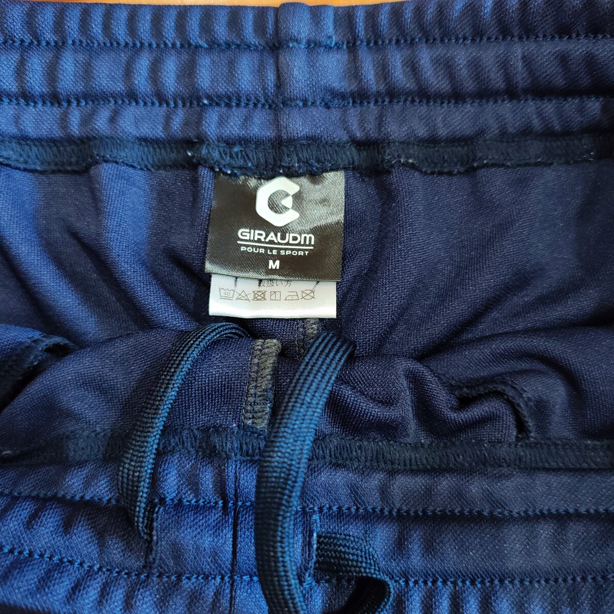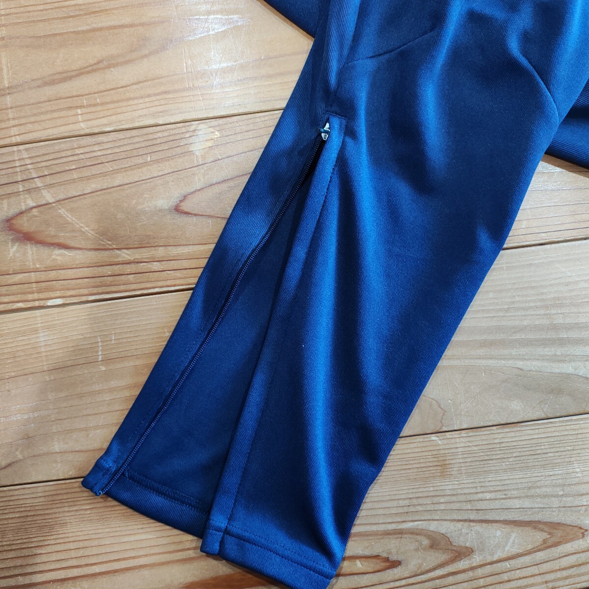 一般的な紺の素材感のジャージです。画像が光って見えにくいです、すみません。