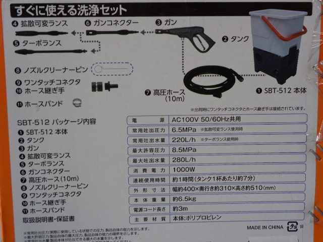 ■動作確認済み■IRIS OHYAMA タンク式 高圧洗浄機/静音タイプ/【専用パーツ】デッキブラシ付き ◆SBT-512■