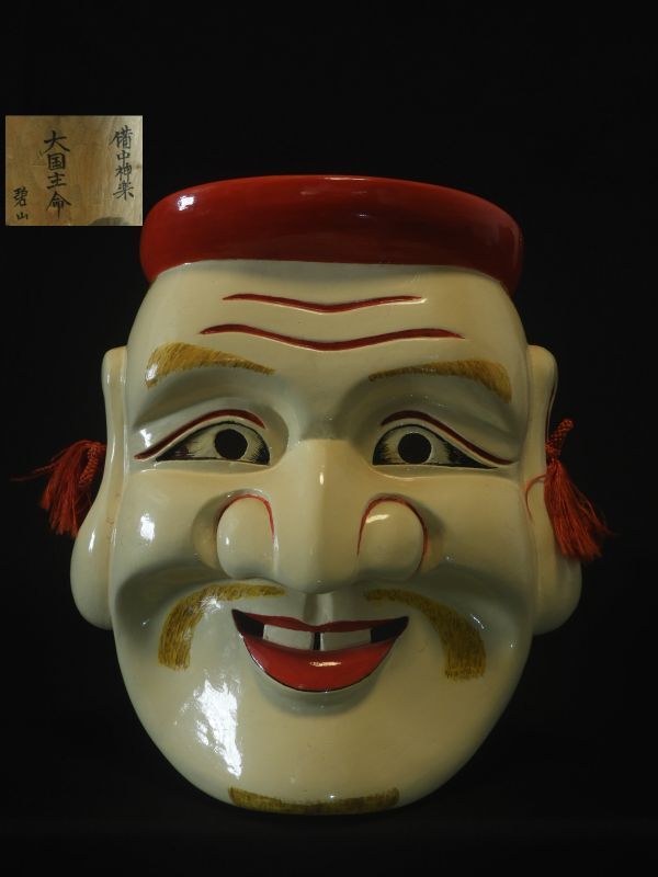 お面 大国主命 青山 碧山 備中神楽 岡山伝統工芸 木彫 壁飾り 【送料無料】
