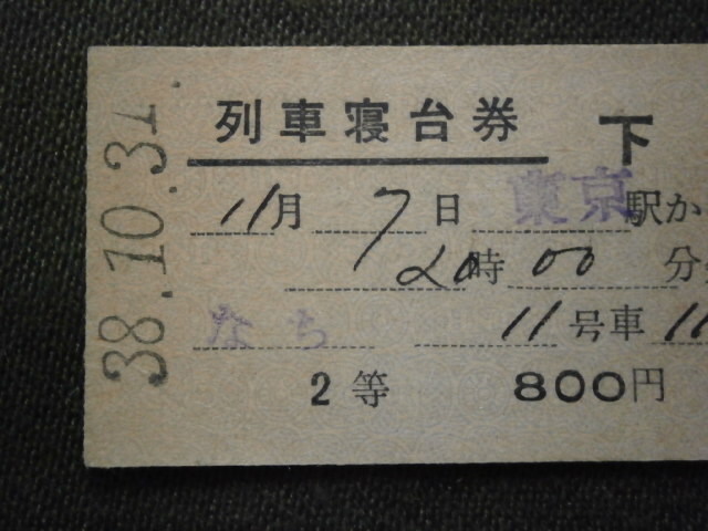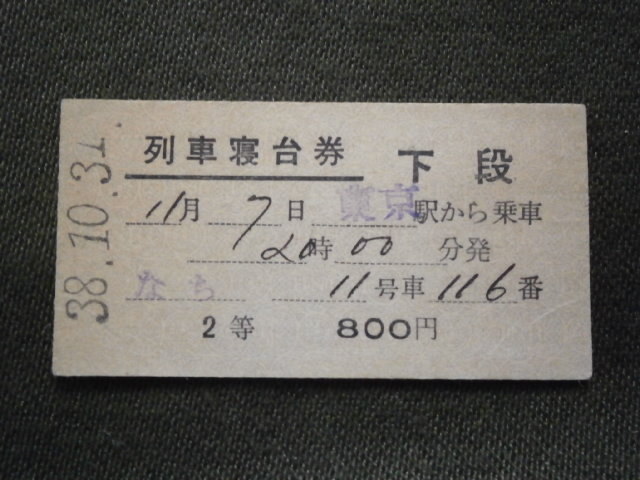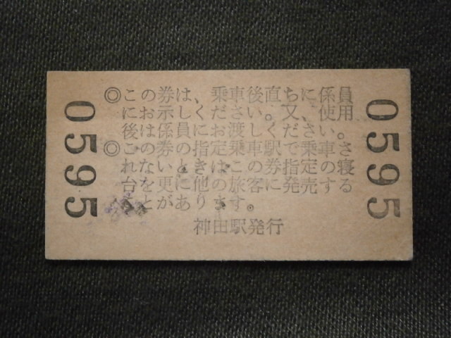 国鉄 神田駅発行、なち号 列車寝台券です。