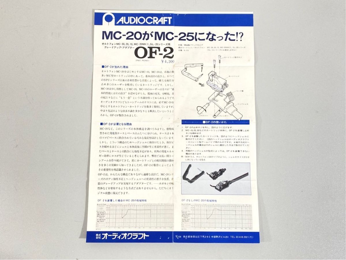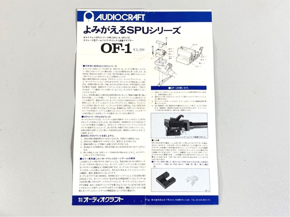 n9741 AUDIO CRAFT オーディオクラフト OF-1 OF-2 アダプター 用 取扱説明書 原本 マニュアル