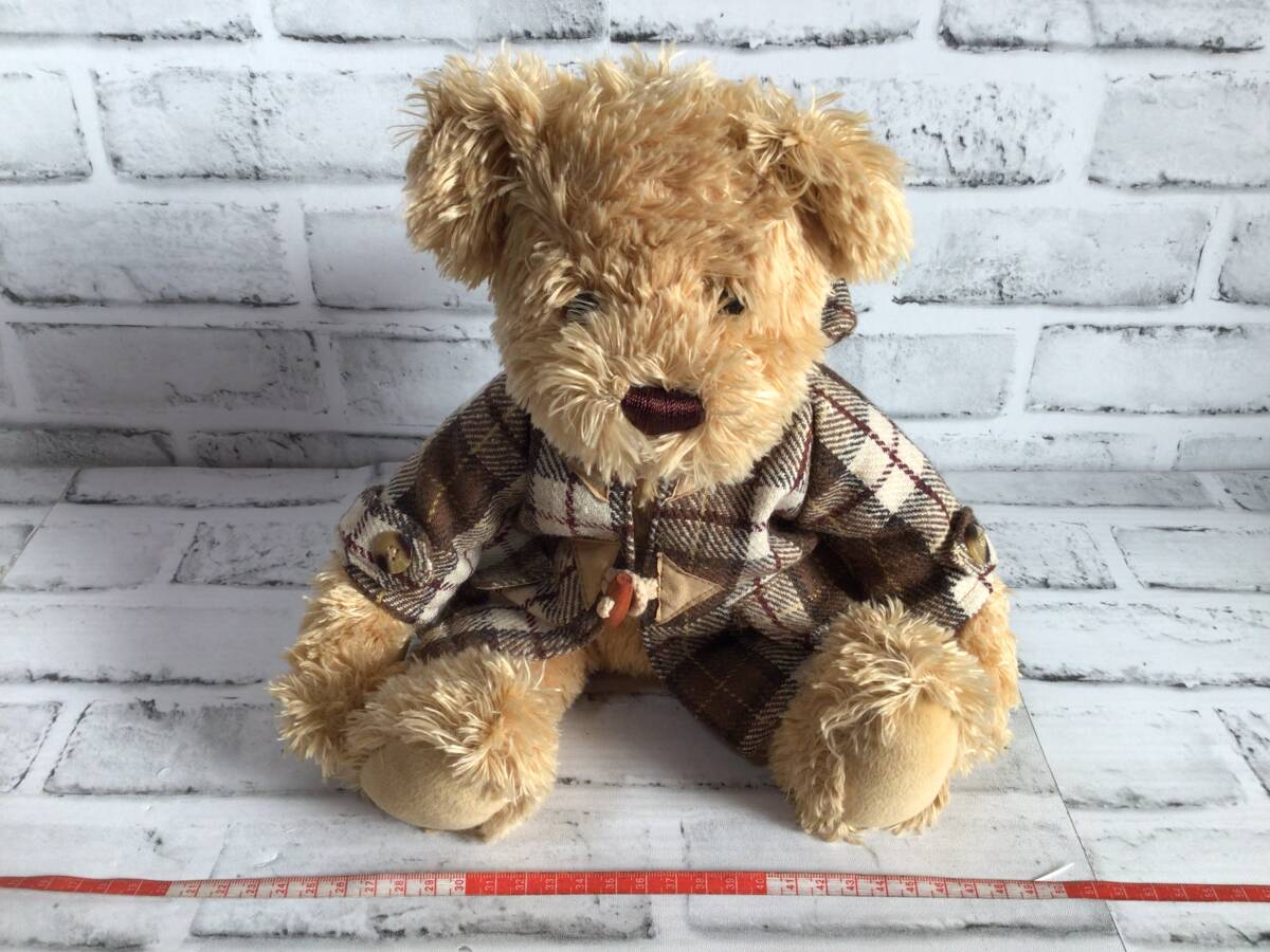 W540 RICH テディベア ぬいぐるみ くま コレクション RicH フード付きダッフルコート チェック柄 現状品