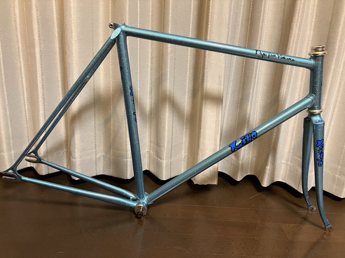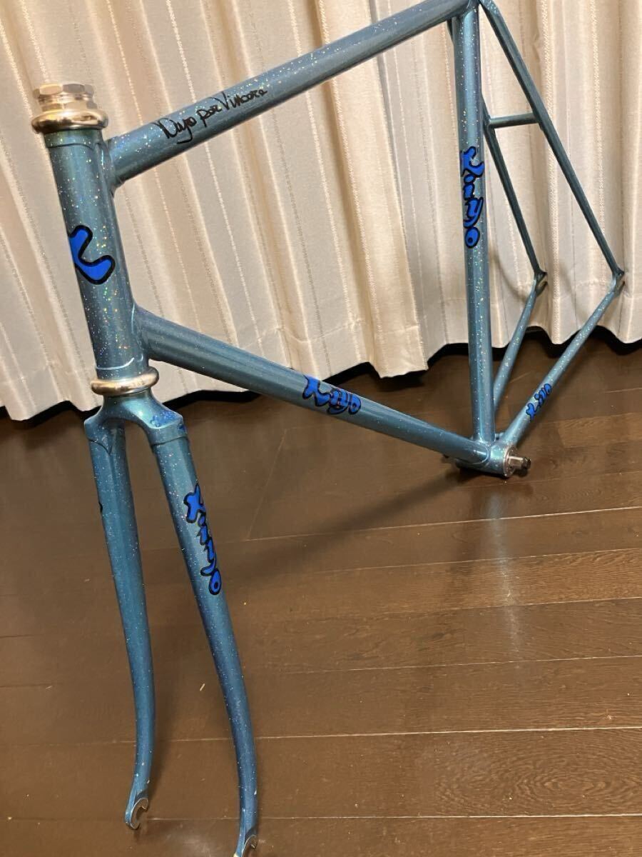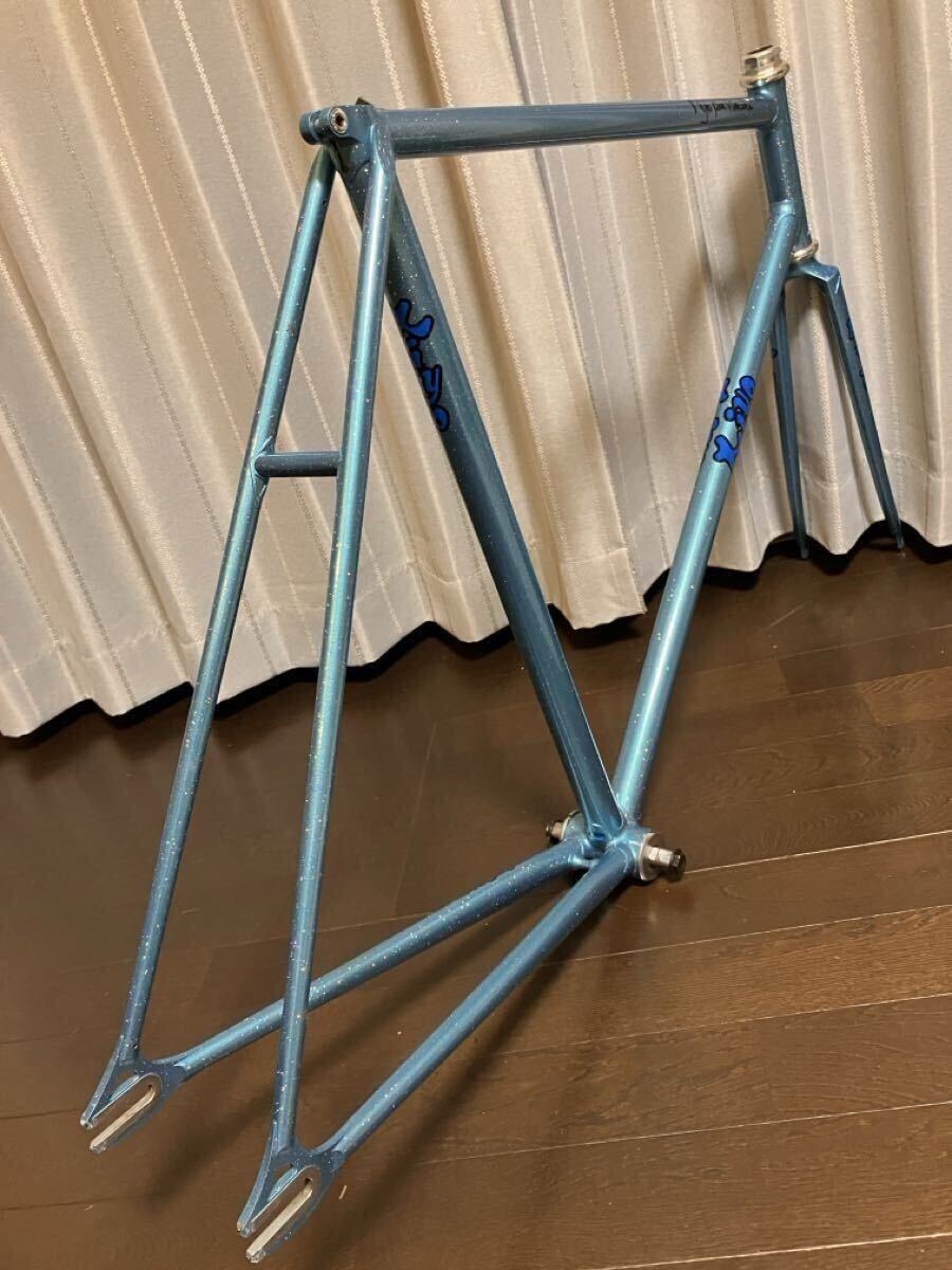 NJS フレーム キヨミヤザワ kiyo miyazawa 555mm 120mm幅 27.2 BB下がり60 019パイプ スカイブルー ラメ有 競輪 トラック ロッシン ヘッド付 used です