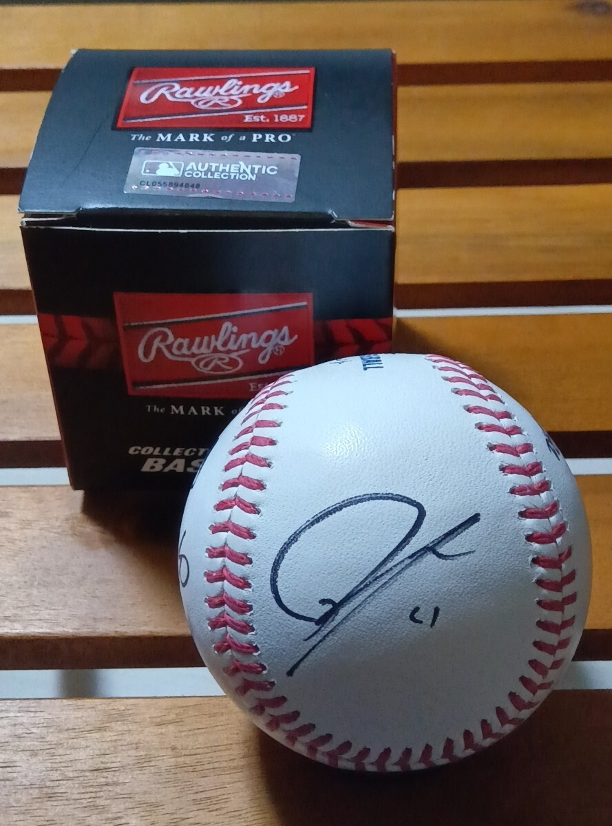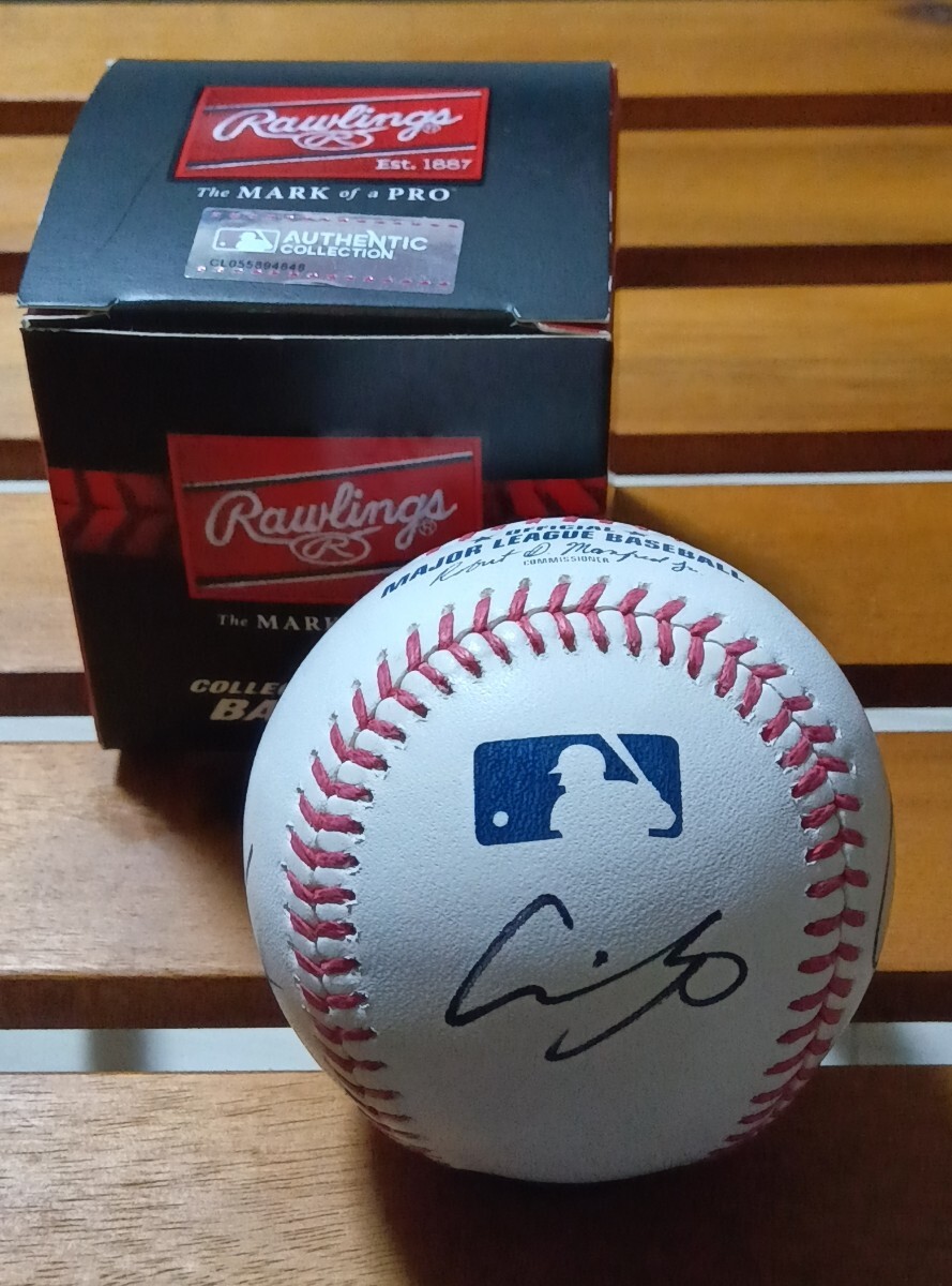 MLB試合球の未使用球にロサンゼルスドジャース、3選手のサインが書かれています。1球のボールに3選手のサインが入ってます。