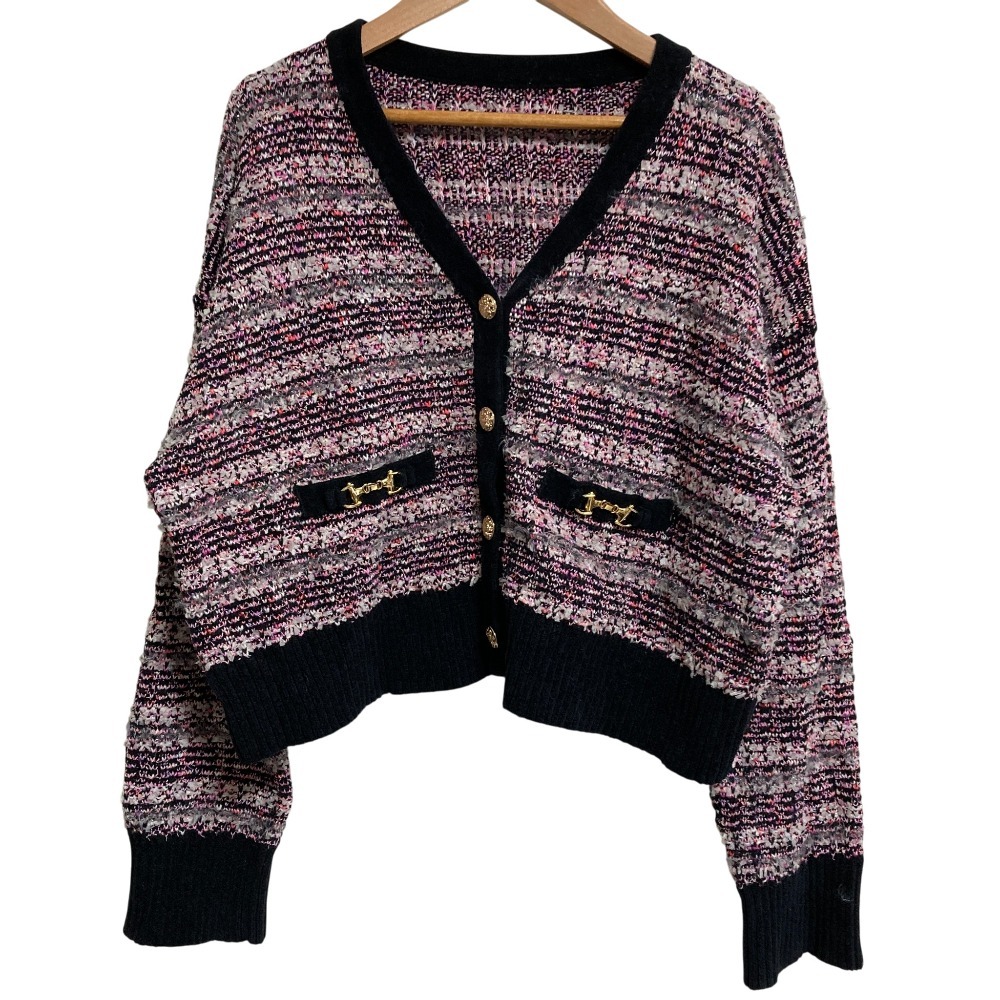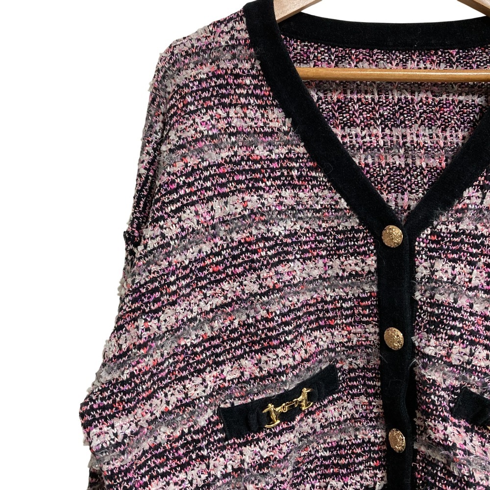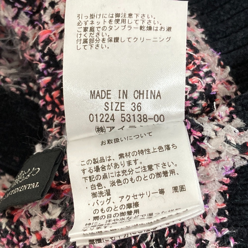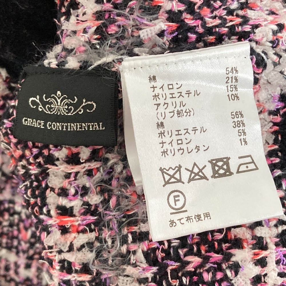 商品名:22AW GRACE CONTINENTAL グレースコンチネンタル ツイードフリンジニットカーディガン 0122453138 サイズ36 ピンク ブラック