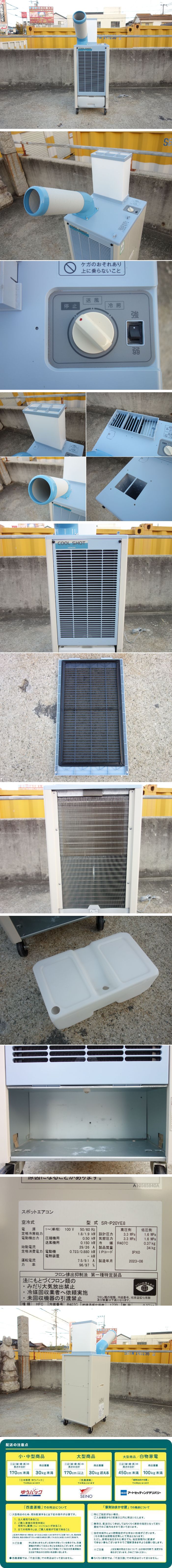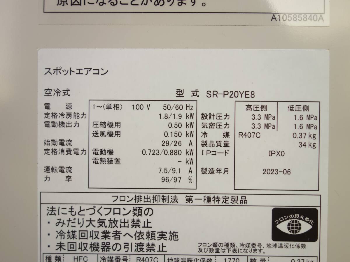 【中古】K▼日立 スポットエアコン スポットクーラー 2023年 1.8/1.9kw COOL SHOT 1口ダクト キャスター付き SR-P20YE8 (33880)