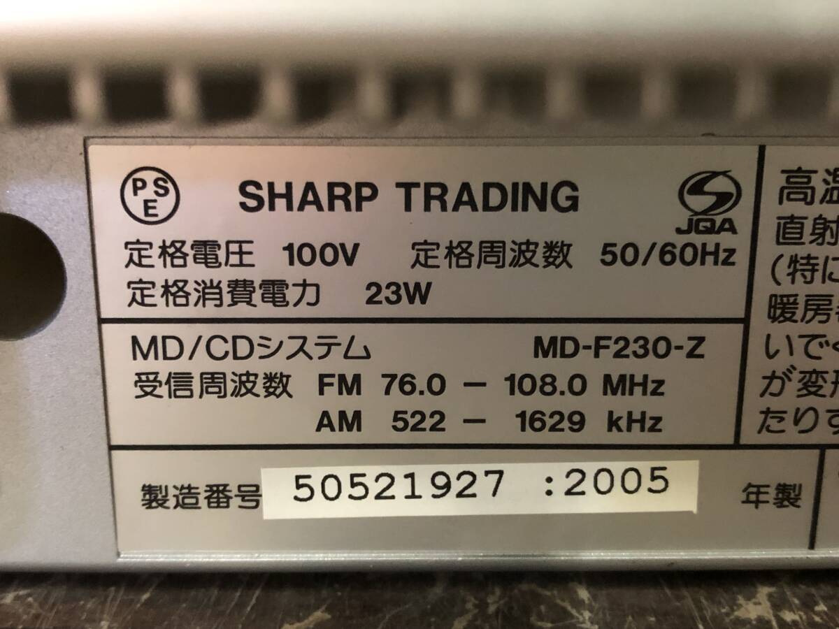 Jラ1499 SHARP シャープ MD/CD/ラジカセ MD-F230-Z