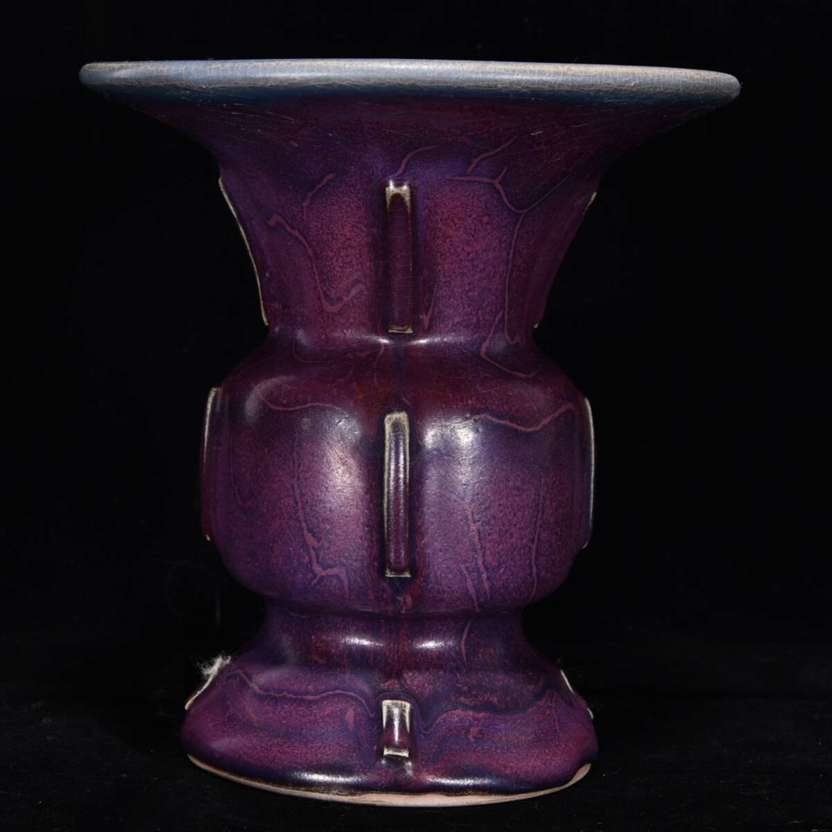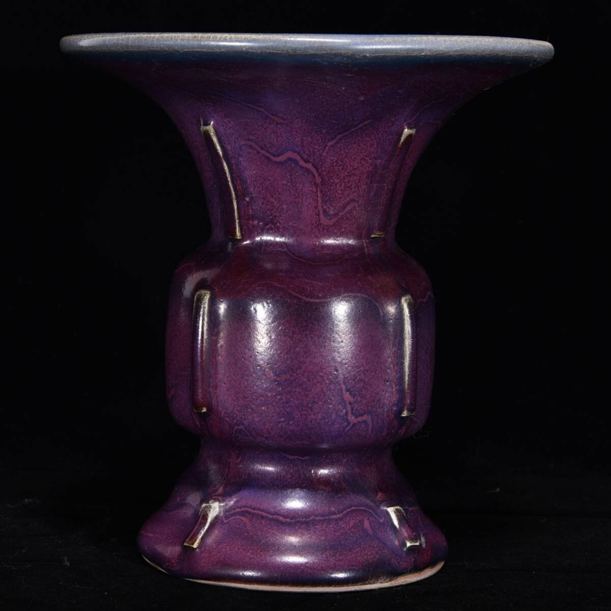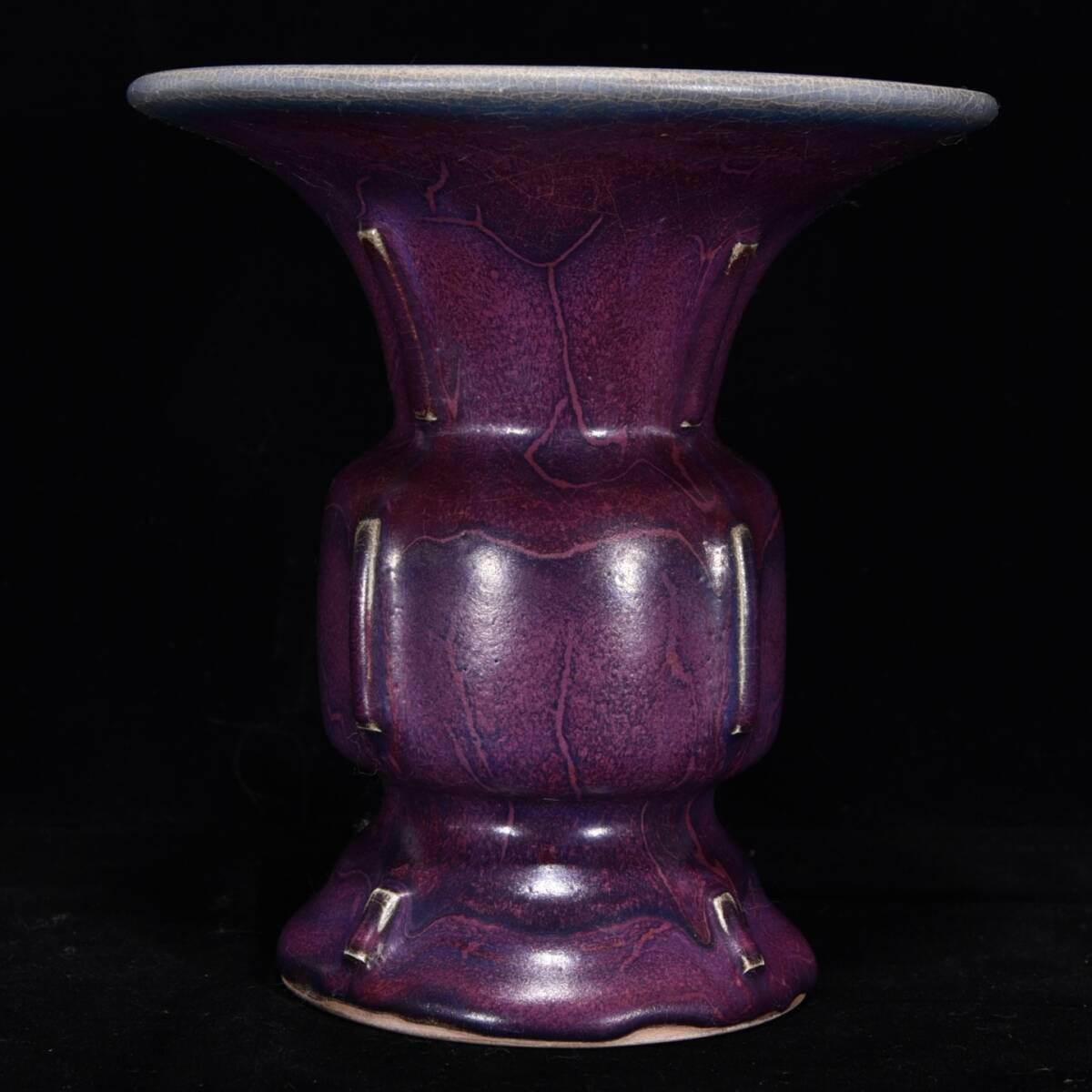 旧蔵 宋 鈞窯 バラ紫釉 出戟尊 陶芸 古陶磁器 中国磁器 極細工 中国古玩 骨董品 古美味 211
