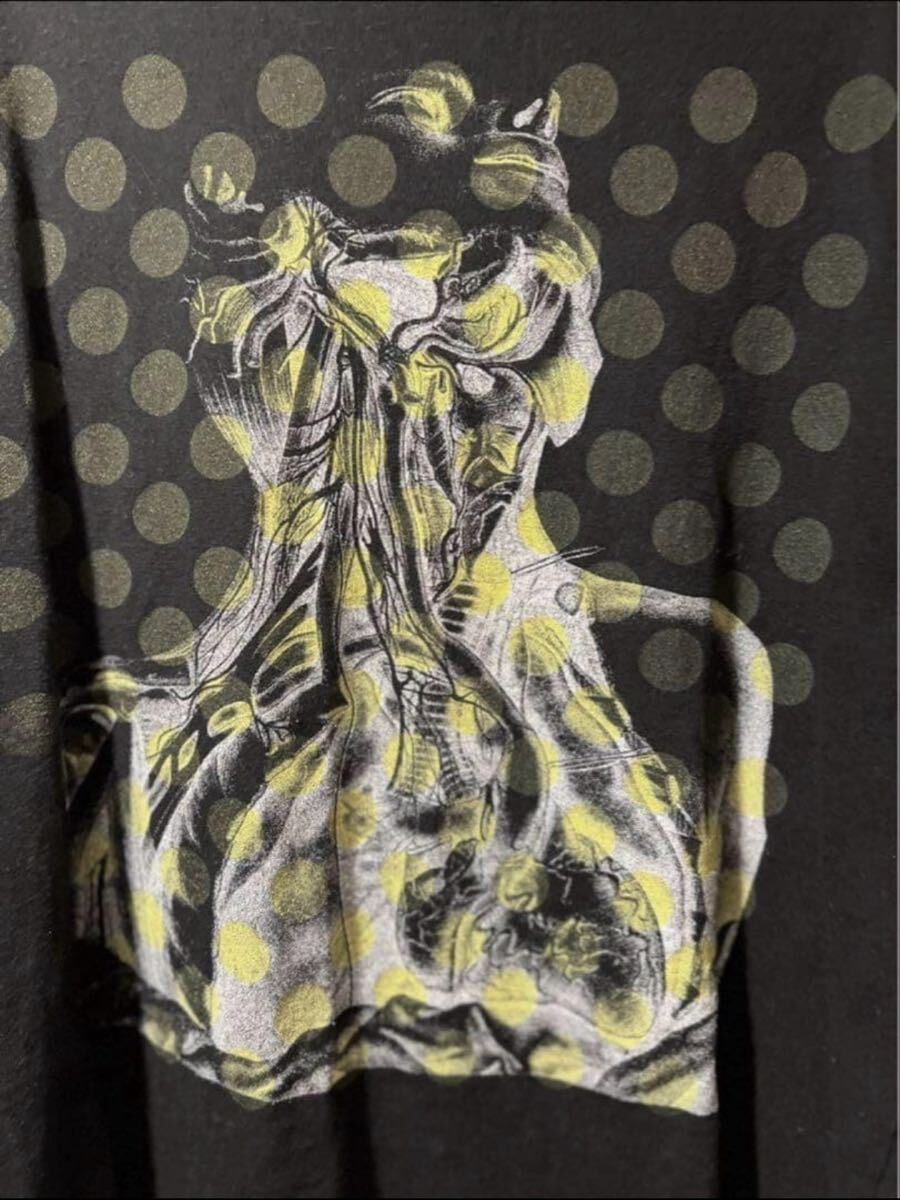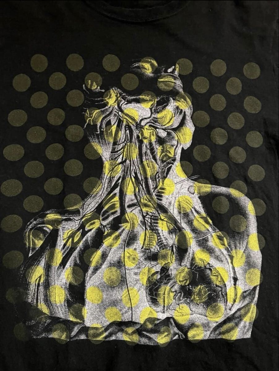 着る機会が少ないのでお譲りします。undercoverismの05ss、but beautiful期のプリントTシャツです。市場ではあまり見かけない希少なアーカイブ品です。解剖人体のプリントにグリーンの水玉のプリントと個性的なデザインから当時のアンダーカバーらしさを感じます。プリントはフロッキープリントが使用されており、ビンテージ感もデザインとして取り入れられています。デザインが効いた一枚なのでTシャツ一枚でも、インナーとして着るてもどちらでもカッコよくスタイリングできます。