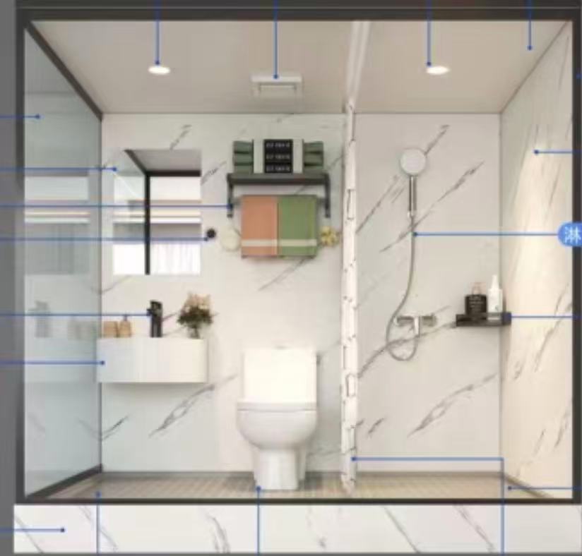 一体型シャワー&トイレユニットバスユニット組み立て式になります。