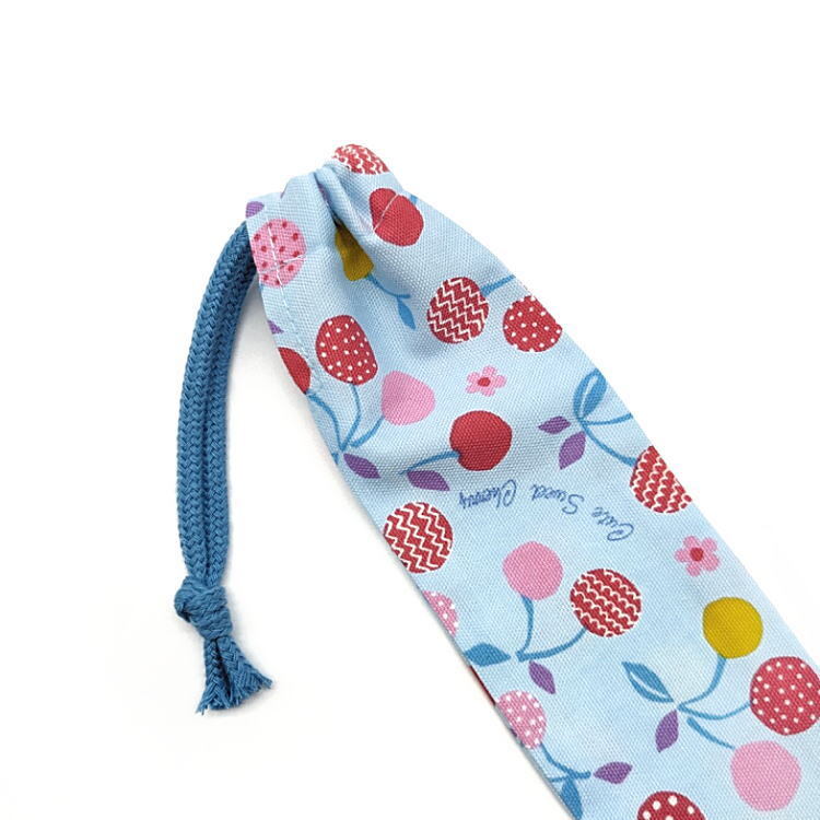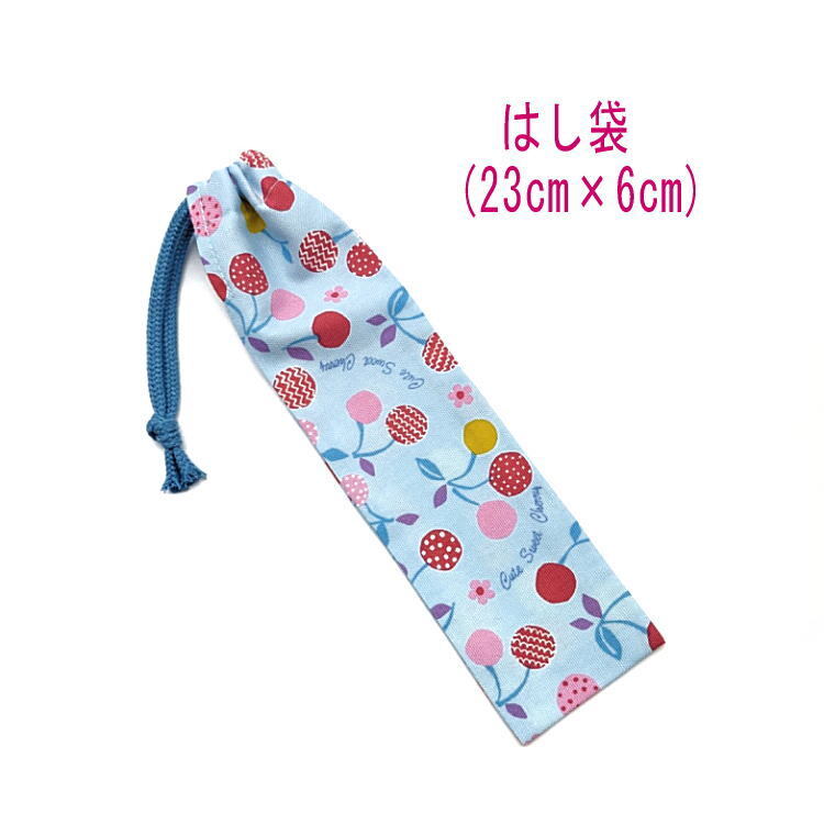 はし袋・小(23cm×6cm)【北欧風 ポップチェリー柄 ブルー】箸袋 箸入れ はし入れ マイ箸 箸ケース 細長巾着 さくらんぼ サクランボ