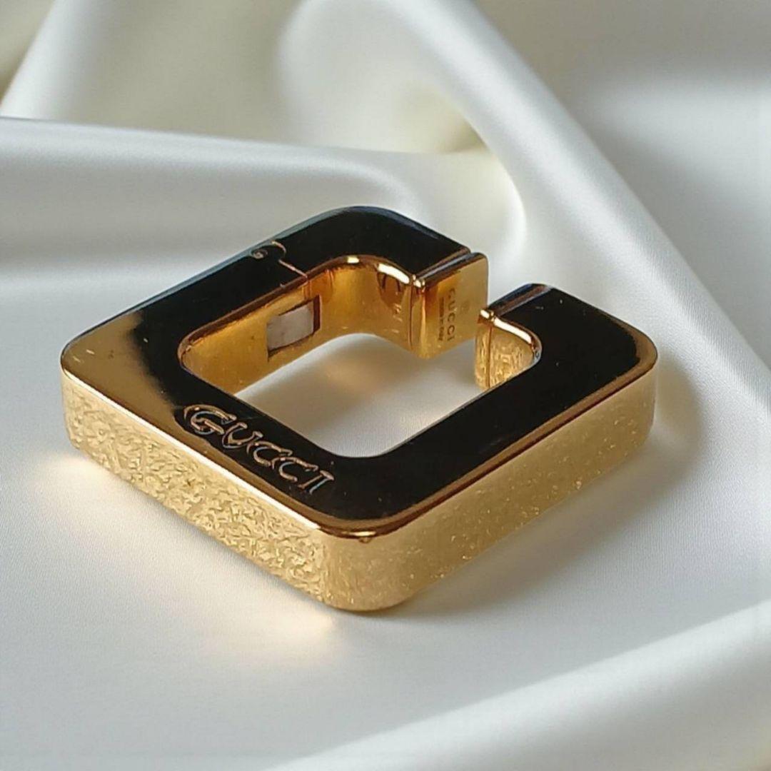 グッチのブランドロゴが印象的な、存在感のあるスクエア型イヤーカフです。