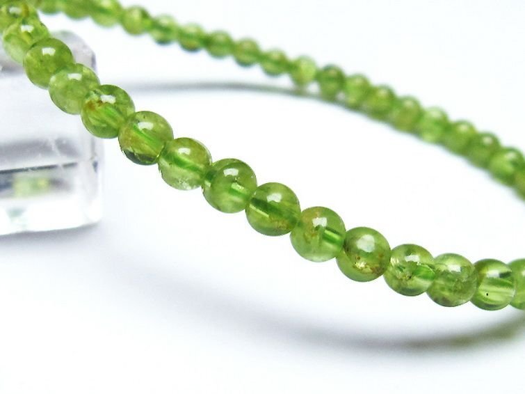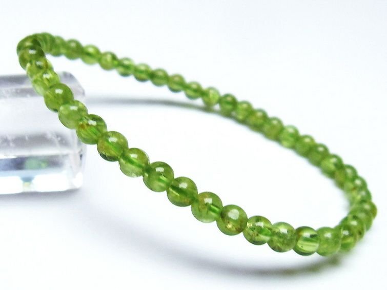 | ■商品名: ペリドットブレスレット ■商品ID: T283-10322 ■商品重量:約 6g ■商品サイズ:内周約:157mm(±5mm)粒直径約:4mm(±0.5mm) 【ペリドット(橄欖石)】 ペリドットは陽光を透かした夏の葉のような、明るく透明な黄緑の石です。その外見からも8月の誕生石として相応しく、明るく闇を吹き飛ばすエネルギーを持つとされています。 太陽の石とも呼ばれるペリドットは、闇夜でも輝く性質から、暗闇に光をもたらし困難の中でも希望を見出す力があると古くから信じられてきました。自身の持つ暗いエネルギーを発散させ、太陽の光を当ててくれるとされています。ネガティブなエネルギーから身を守るお守りとしても有効とされています。 暗い妄想や怒り、悲しみなどのマイナス感情が気づかぬうちに沸いてくる時には、元となる心の傷を癒し明るく前向きに進めるように手助けするとされています。また、自信をなくして落ち込んでいる時には、希望をもたらすとされていますので、落ち込み傾向にある方にもお勧めです。 ■ワンポイント情報 出会いを恋に発展させたり、社交性を広げ縁や人脈を増やすとされ、意中の人にも上手く近づけるようになるとされていますので、片思いの人の強力なお守りといえるかもしれません。また浮気がちな相手に持たせると浮気封じになるとされていたり、家庭を円満にするとされていますので既婚者にもお勧めです。 |