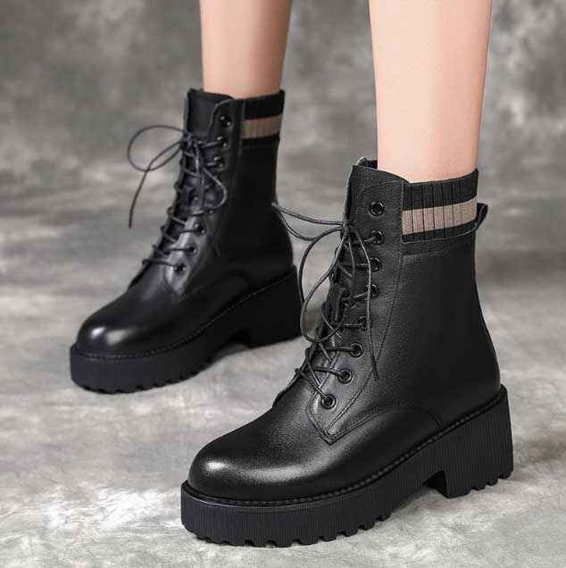 ブーツ ショート 裏ボア 厚底 脚長 裏起毛 滑り止め レースアップ 40 黒(裏起毛)