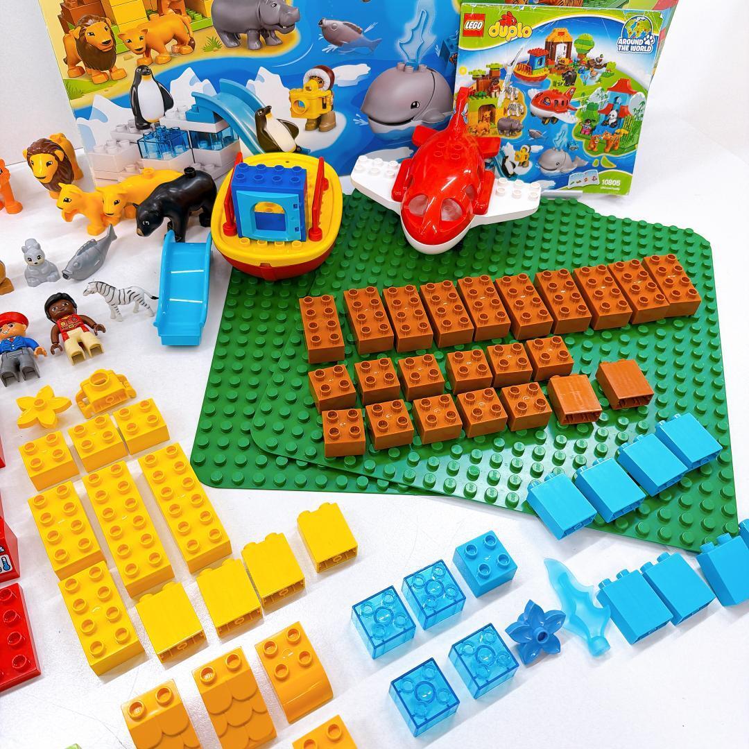 レゴデュプロの「世界のどうぶつ 世界一周探検 10805」のセットです。ブロックや動物、乗り物、人形など、様々なパーツが含まれており、お子様の想像力を育むのに最適です。