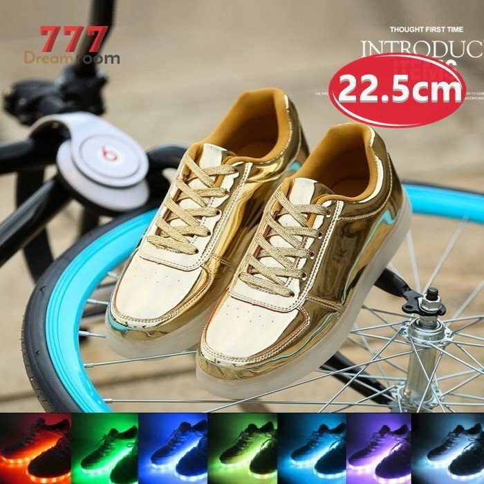 7色に光る☆LED ライトアップスニーカー メタリック ダンス 【ゴールド 22.5cm】夜間 交通事故防止 反射材 ジョギング 自転車