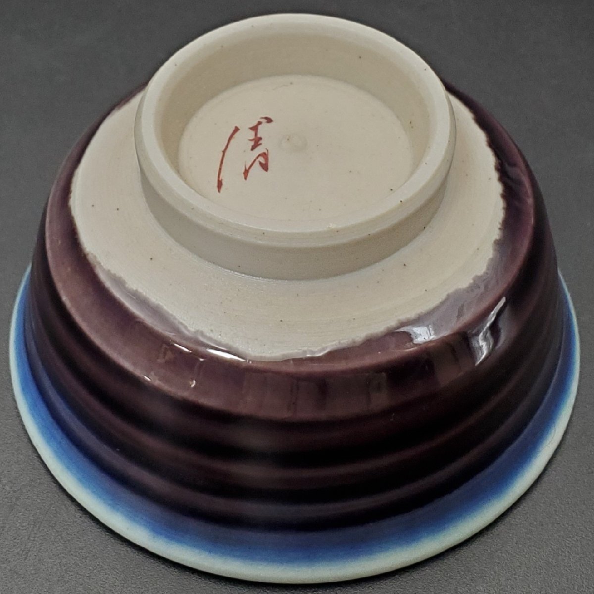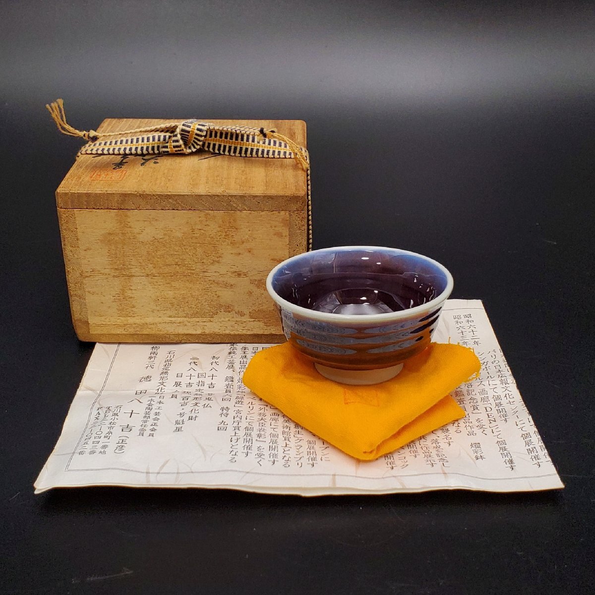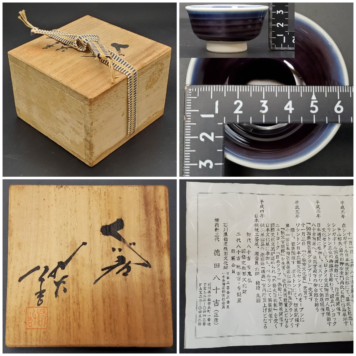 【宝蔵】九谷焼 人間国宝 三代 徳田八十吉 徳田正彦 彩釉 酒盃 ぐい呑み 口径約6.5㎝ 酒器 共箱