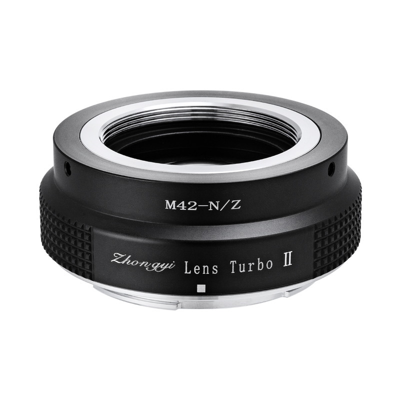 Lens Turbo II(レンズターボ2)M42-NZは、M42マウントレンズをニコンZマウントカメラボディに装着するためのフォーカルレデューサーレンズ搭載マウントアダプターです。 フォーカルレデューサーの効果