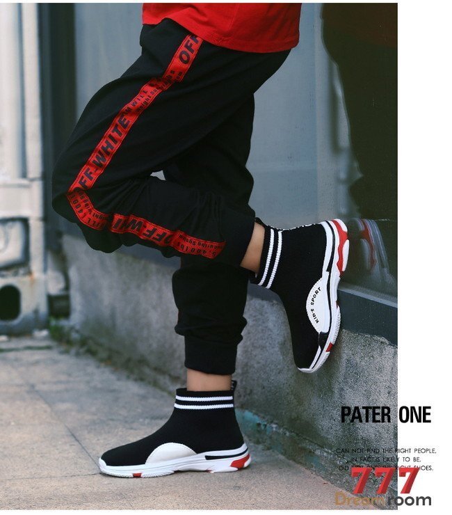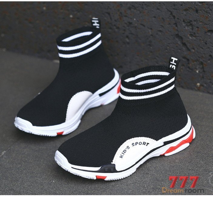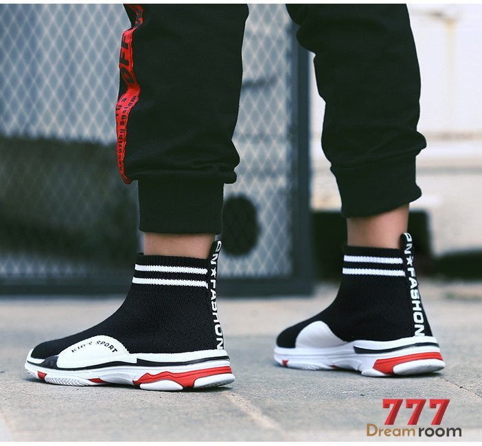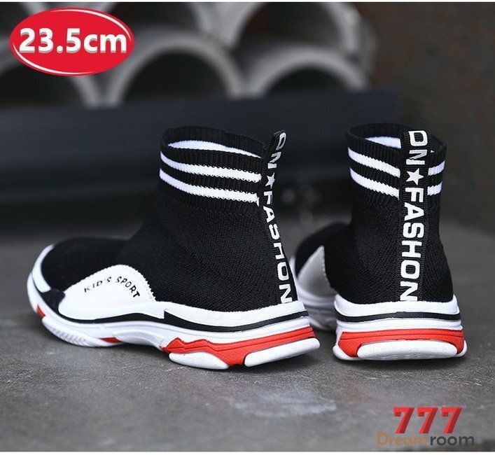 kids 夏用 ハイカット スニーカー 【ブラック×ホワイト 23.5cm】 韓国子供服 キッズ シューズ ニットスニーカー 子供用 男女