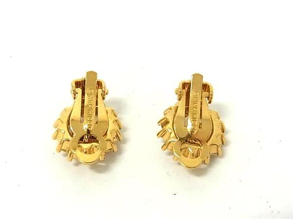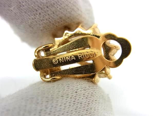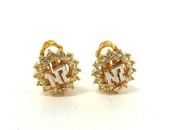 ■美品■ NINA RICCI ニナリッチ ロゴモチーフ ラインストーン クリップ式 イヤリング アクセサリー ゴールド系×シルバー系 DH9546