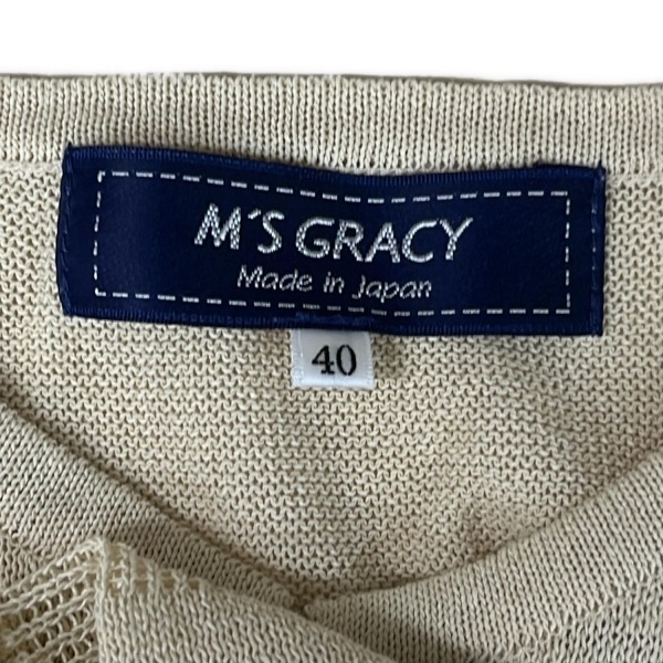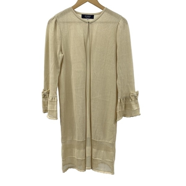 エムズグレイシー M'S GRACY カーディガン サイズ40 M - ベージュ レディース 長袖/ラインストーン/ロング丈/リボン 美品 トップス