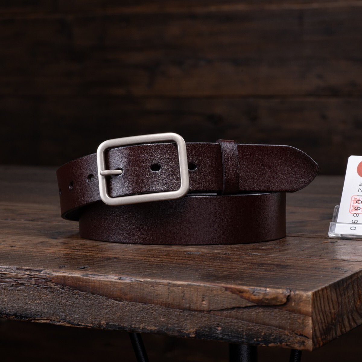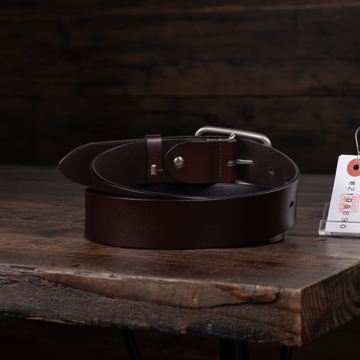 ダークブラウン【牛革】イタリアンレザー シンプル メンズ 本革 ベルト フリーサイズ ナチュラル 新品 未使用 送料無料 1円 茶 田中革具