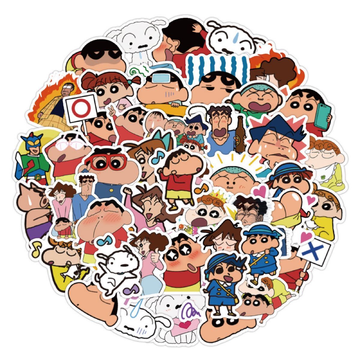 【ステッカーサイズ】クレヨンしんちゃんステッカー50枚、サイズ約5~8cm、カラーデザイン、リピート不可、写真と同じ。さまざまなシーンやアニメのキャラクターが含まれており、家族や友人へのプレゼントにも最適です。