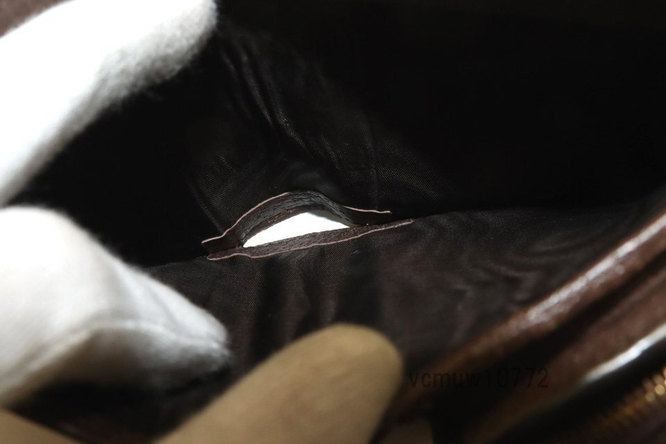 中古ですので新品と比較してすれ、小傷、色むら、若干の型崩れ、使用に問題ないレベルの糸ほつれ、金具にくすみ等ございますが写真の通りコンディション良好です。