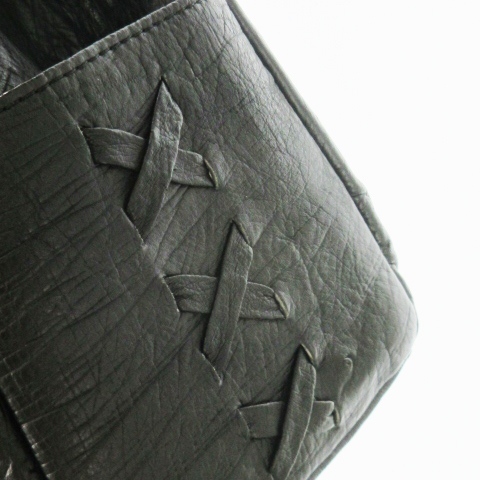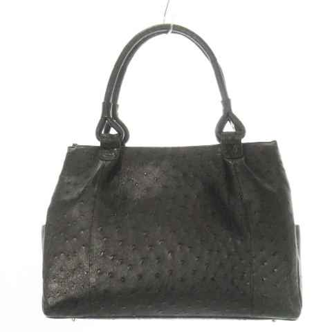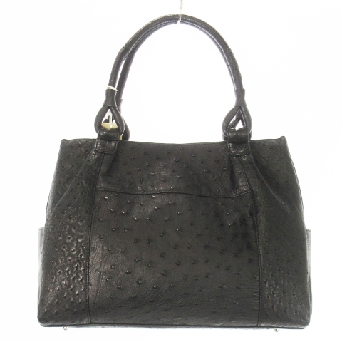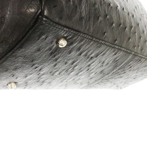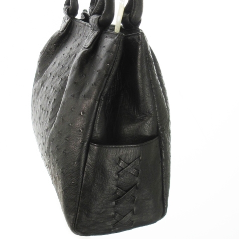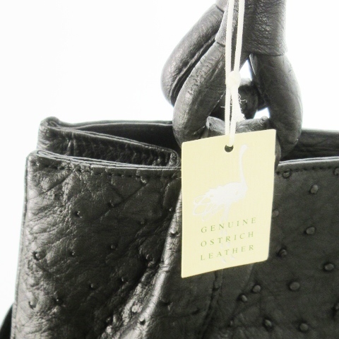 未使用品 ノーブランド ハンドバッグ オーストリッチ レザー 革 レースアップ 黒 ブラック /CK22 ■GY18 レディース