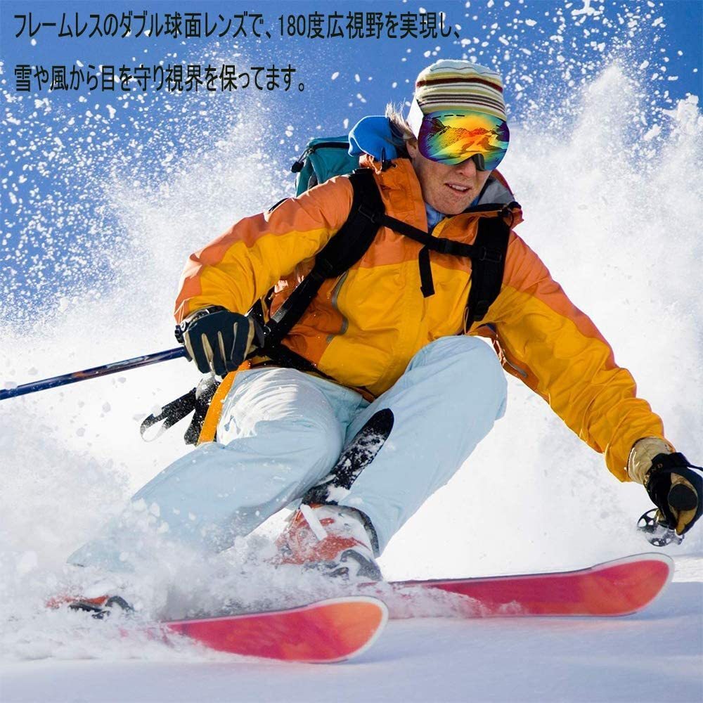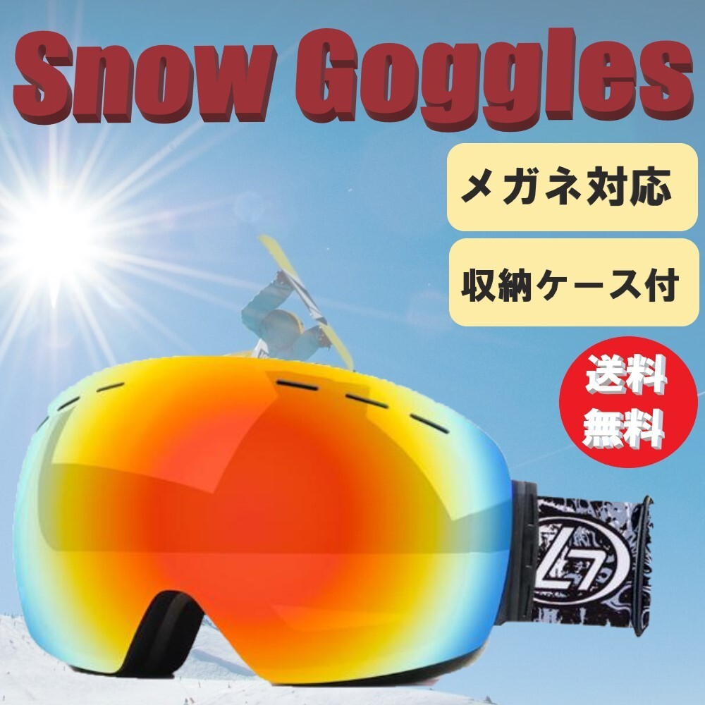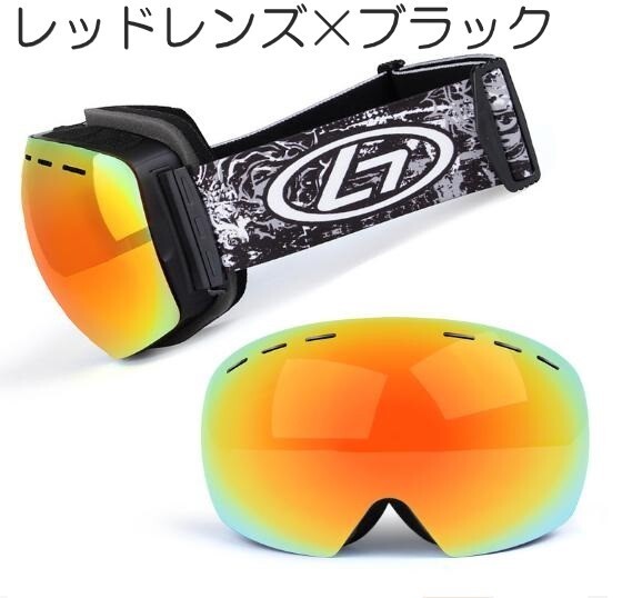 ☆送料コミコミ☆ 専用収納ケース付き スノーゴーグル レッドレンズ×ブラック スキーゴーグル UVカット ダブルレンズ 大人用